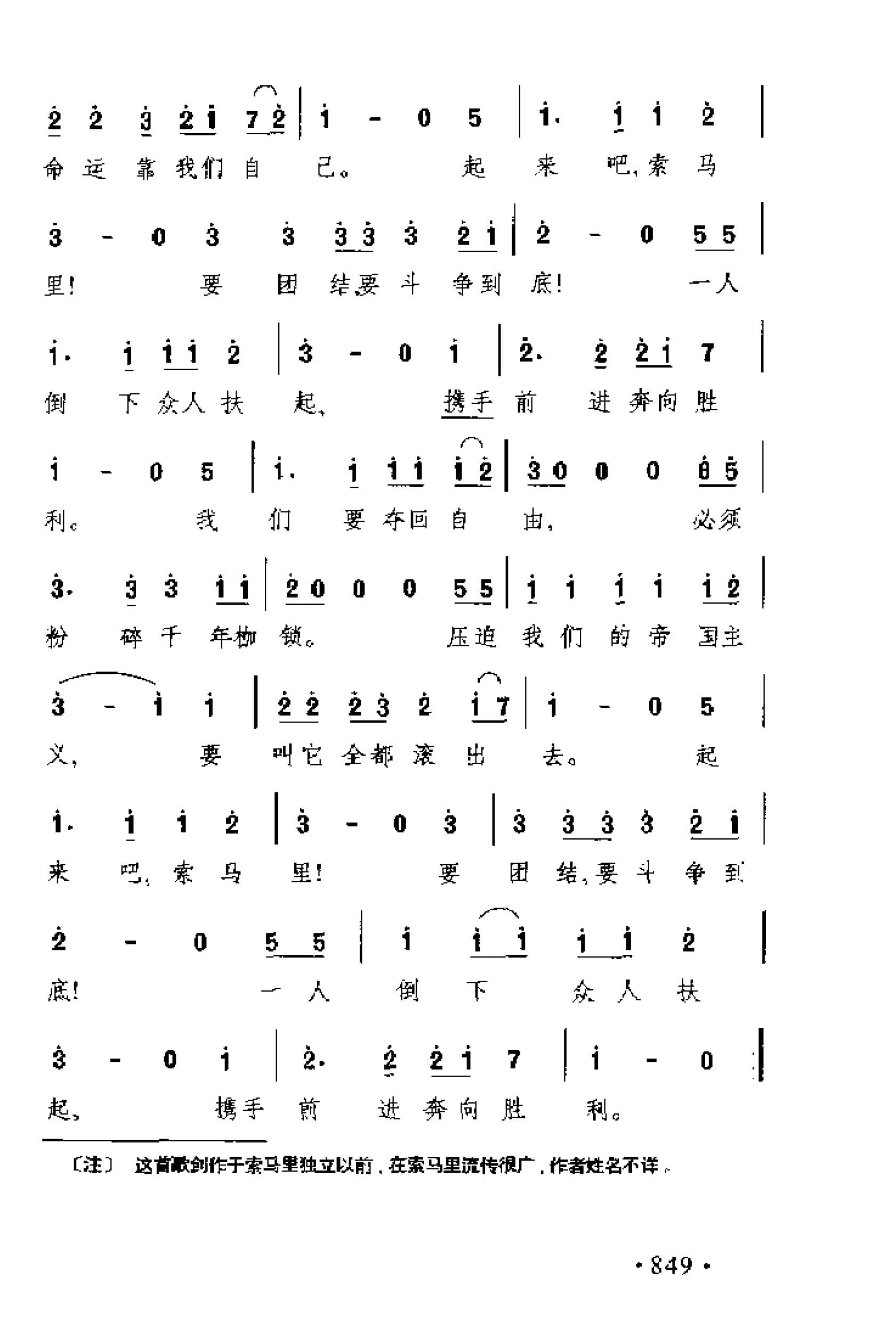 名称:外国现代歌曲简谱:起来,索马里 索马里歌曲国家:索马里分类:歌谱子类:外国歌谱类型:简谱文件格式:jpg