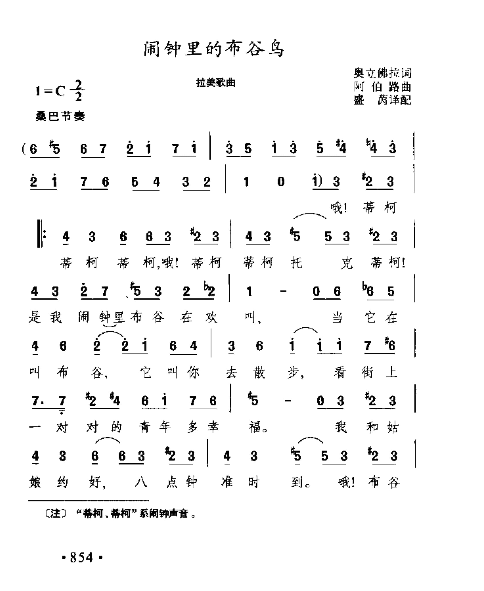 名称:外国现代歌曲简谱:闹钟里的布谷鸟 拉美歌曲国家:外国分类:歌谱子类:外国歌谱类型:简谱文件格式:jpg