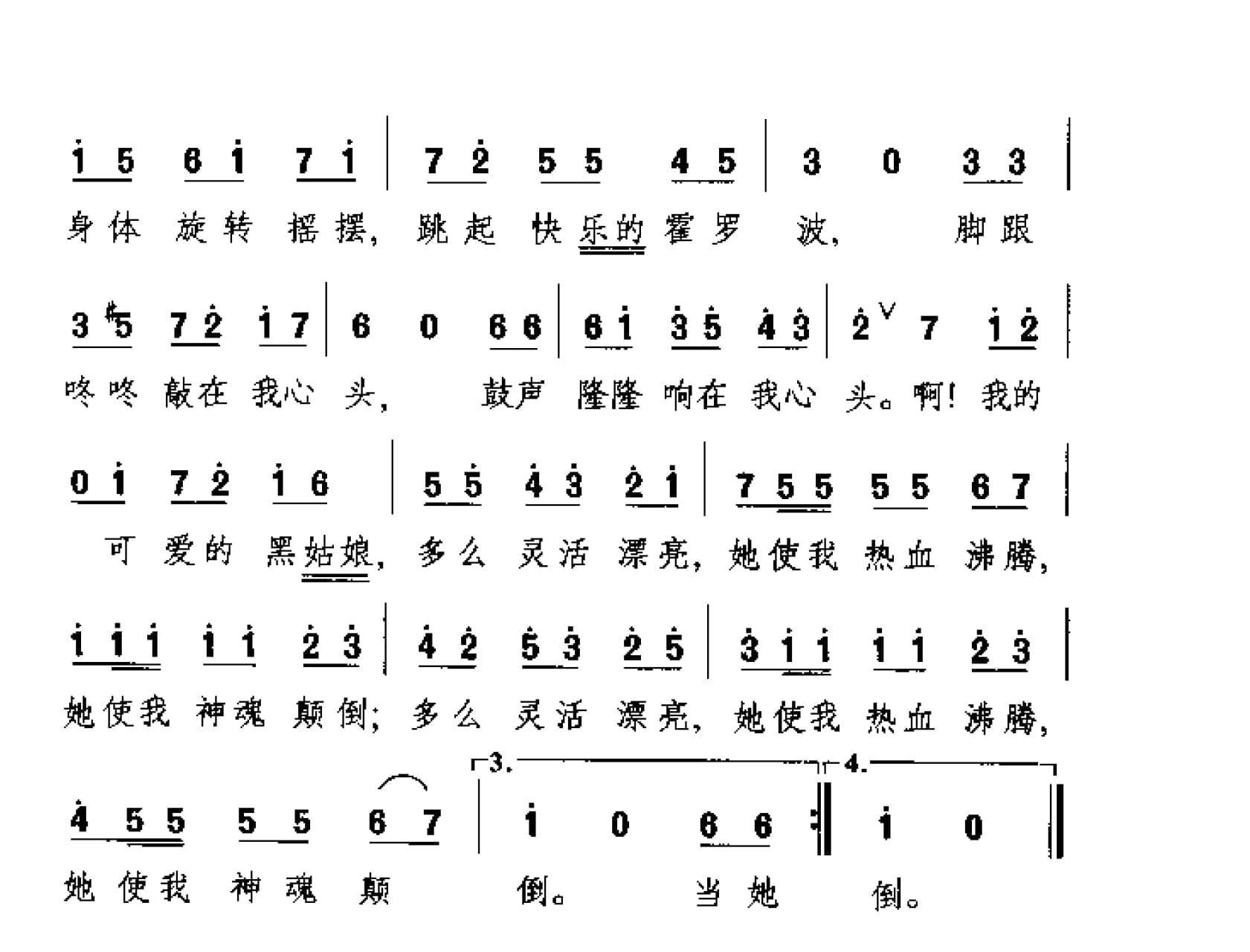 名称:外国现代歌曲简谱:我爱我的黑姑娘 拉美歌曲国家:外国分类:歌谱子类:外国歌谱类型:简谱文件格式:jpg