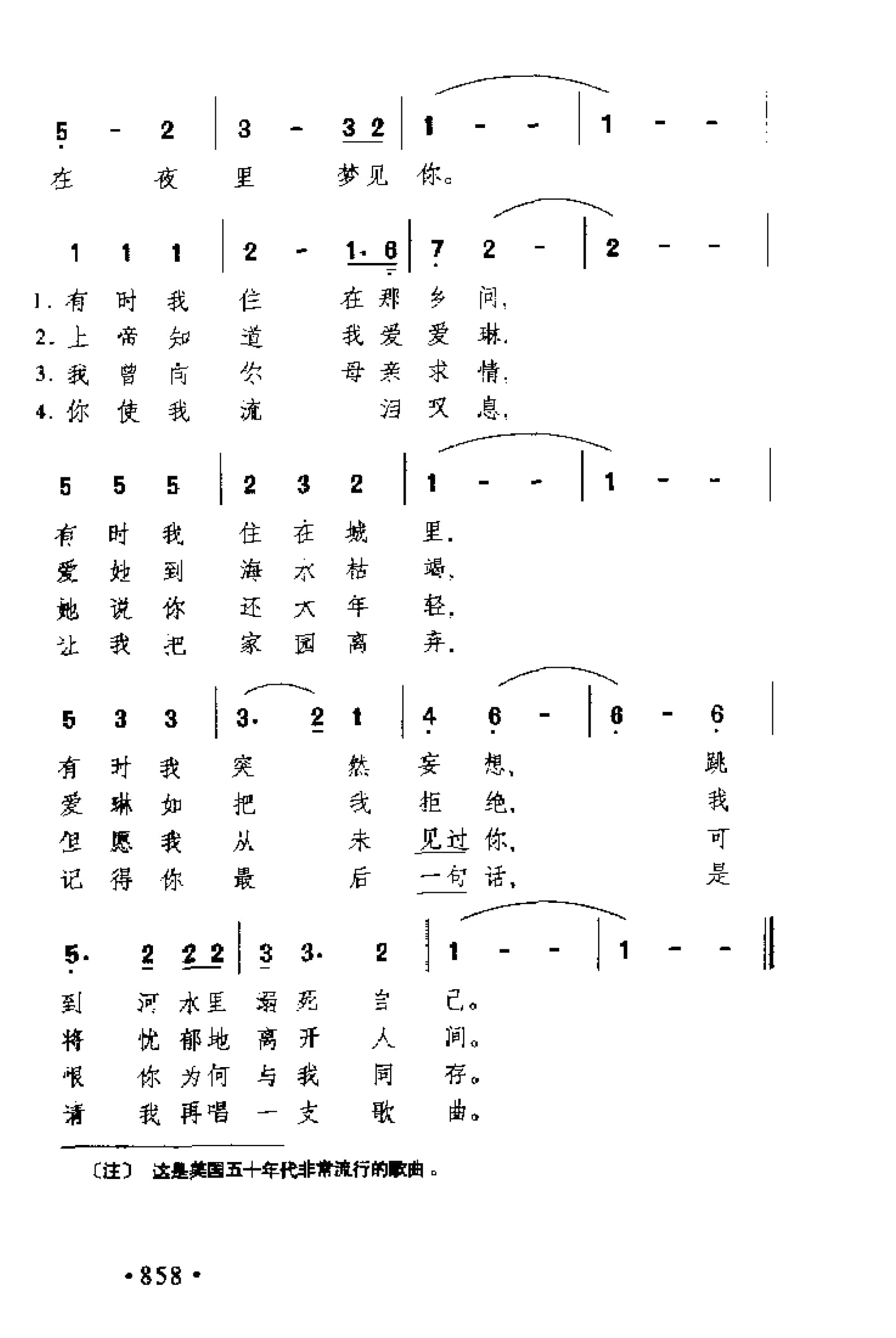 外国现代歌曲简谱:爱琳,晚安 拉美歌曲