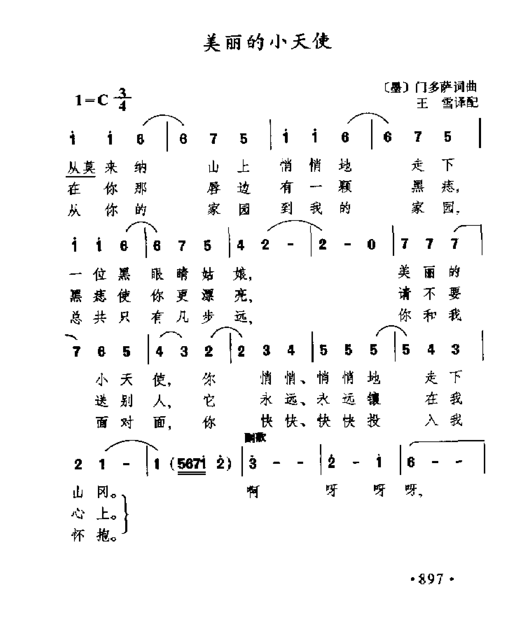 外国现代乐曲简谱:美丽的小天使(墨)门多萨曲