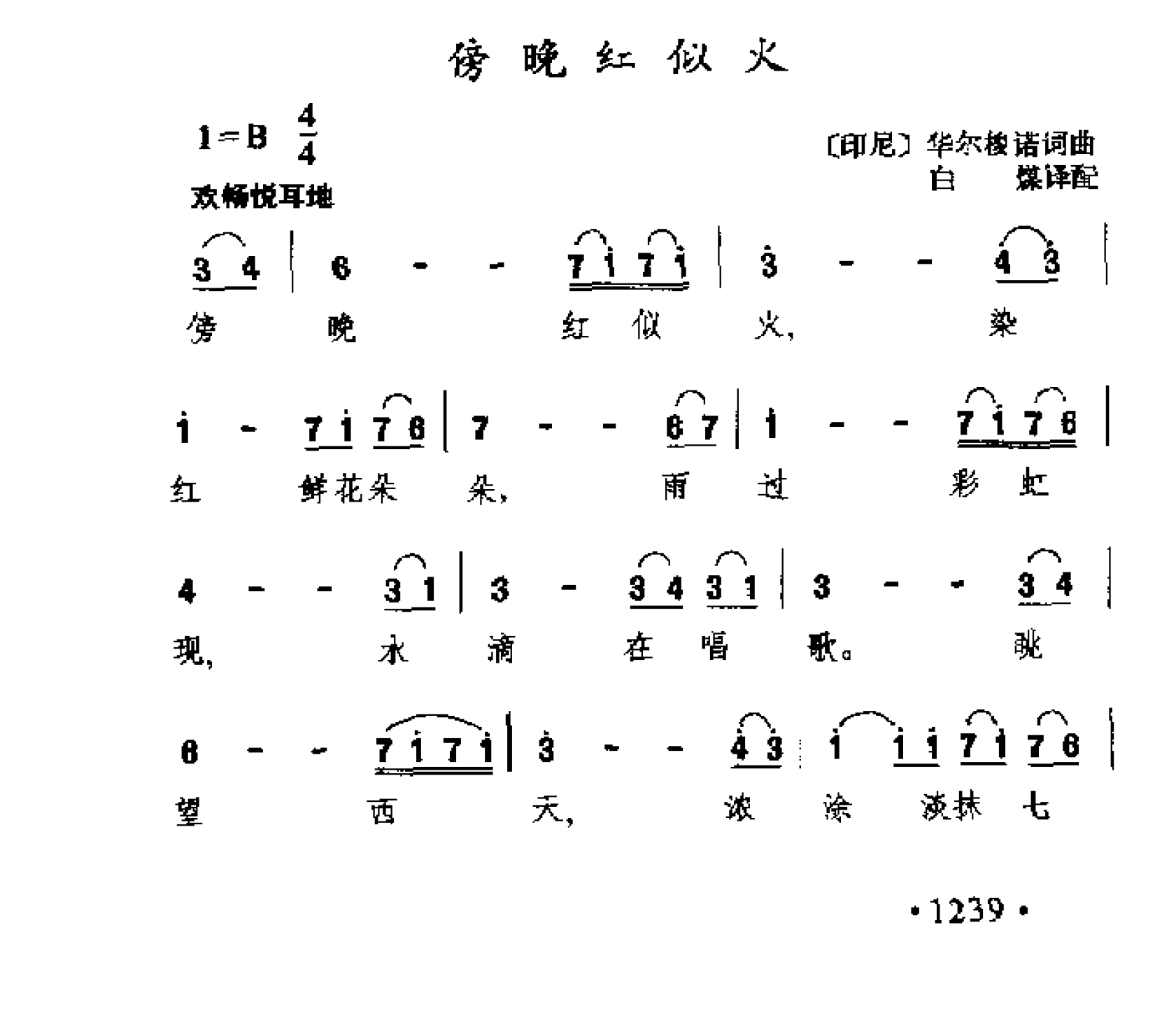傍晚红似火(印尼)华尔梭诺曲简谱歌词是曲谱查询网于2025年02月08日 09:55:58更新在外国曲谱频道中的内容,收录在外国曲谱栏目中;曲谱查询网分享的傍晚红似火(印尼)华尔梭诺曲简谱五线谱高清图片,欢迎在线免费下载;曲谱查询网无需注册,即可直接下载海量歌曲谱与乐器学习相关资料。