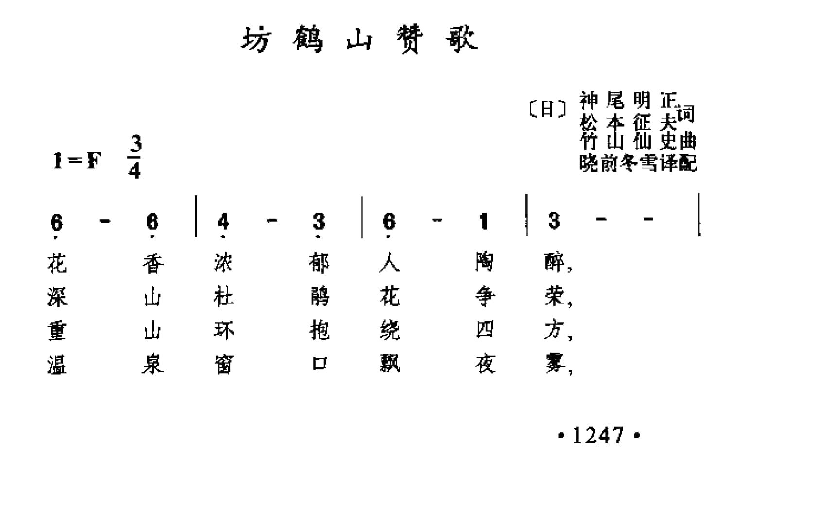 名称:坊鹤山赞歌 日 竹山仙史曲