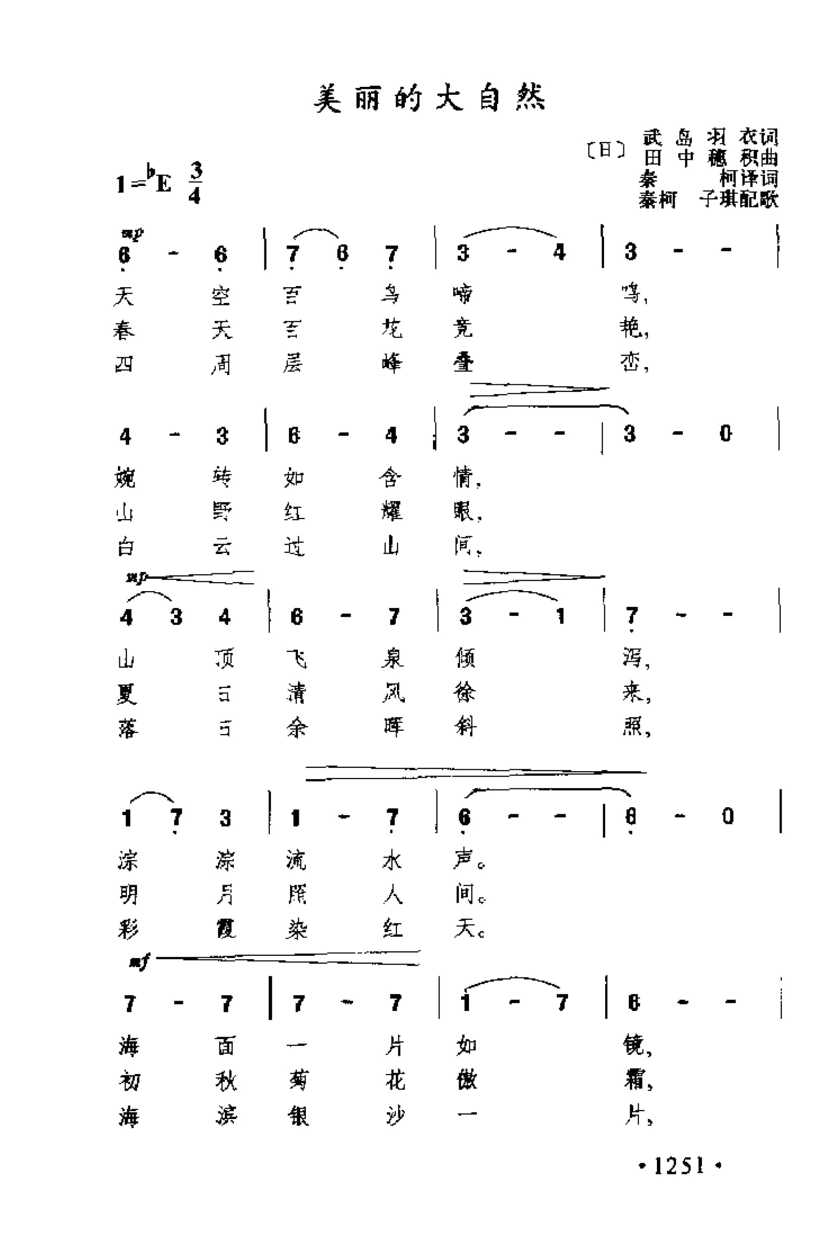 名称:美丽的大自然 日 田中穗积曲国家:日本分类:歌谱子类:外国歌谱类型:简谱/五线谱文件格式:jpg