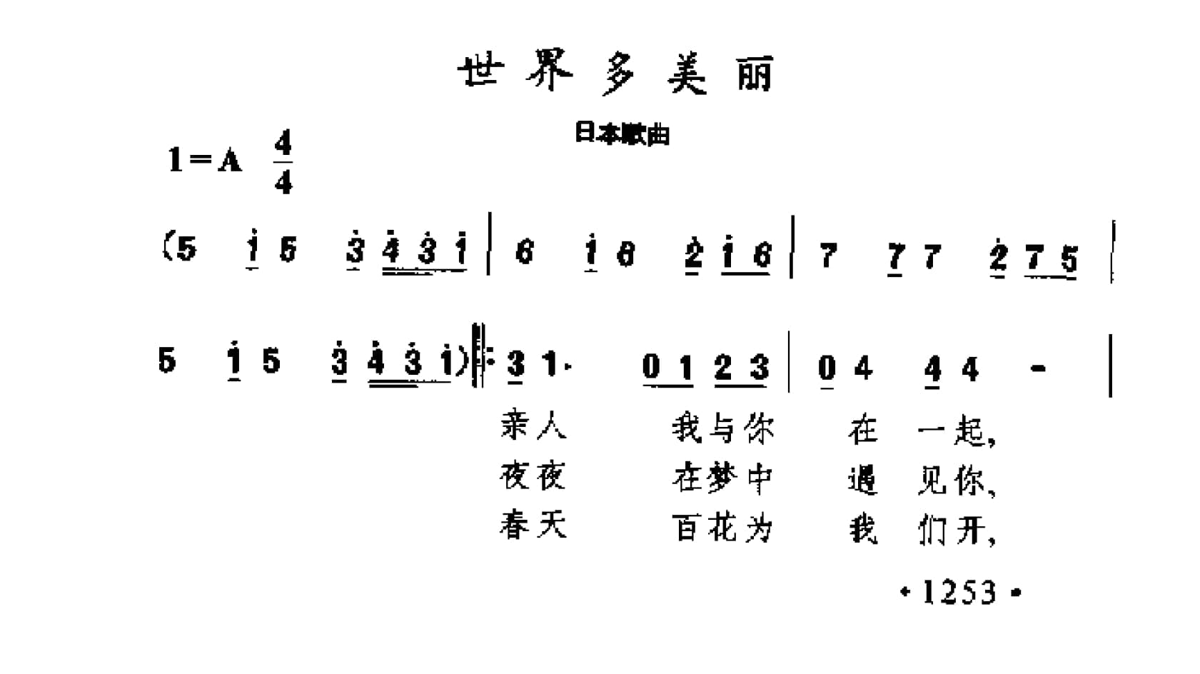名称:世界多美丽 日本歌曲国家:日本分类:歌谱子类:外国歌谱类型:简谱/五线谱文件格式:jpg