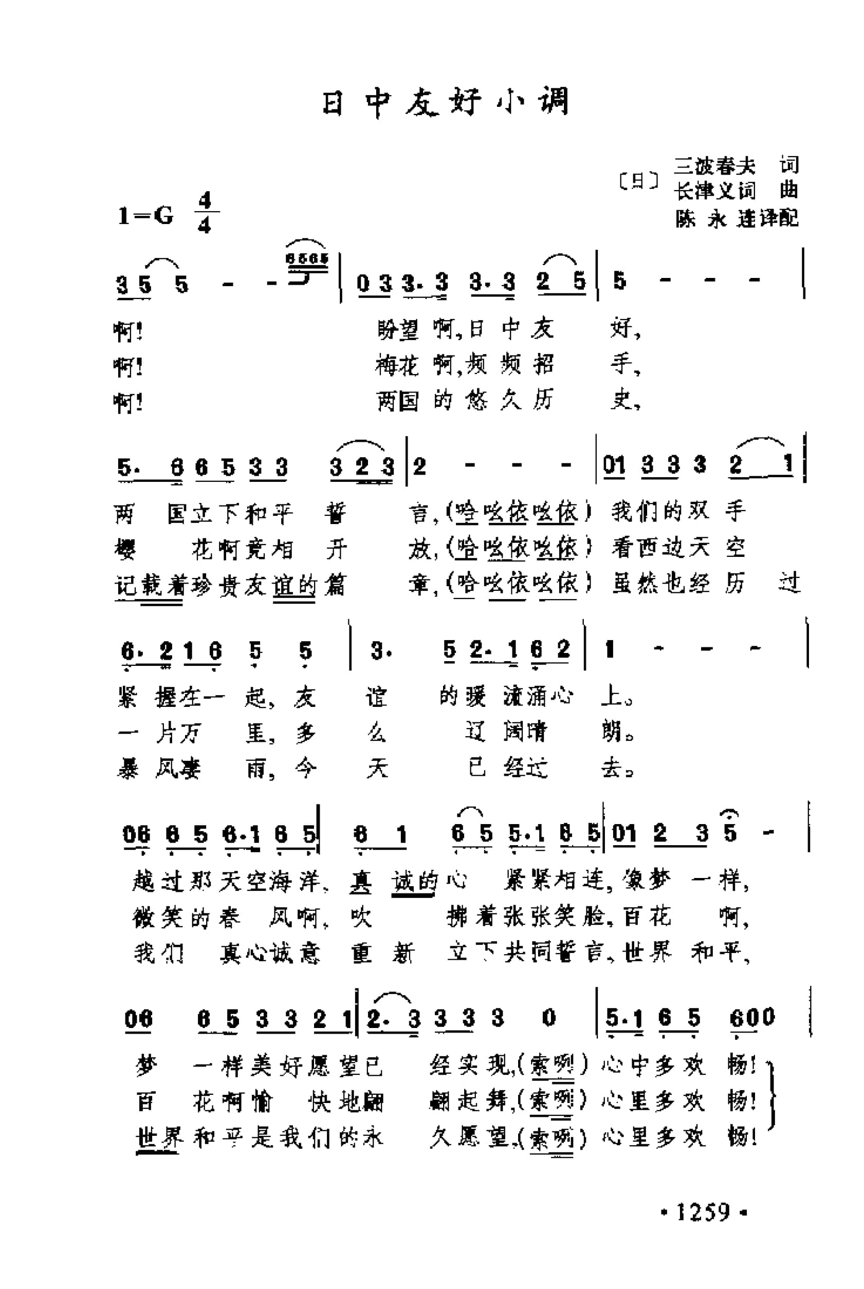 名称:日中友好小调 日 武川行秀曲国家:日本分类:歌谱子类:外国歌谱类型:简谱/五线谱文件格式:jpg