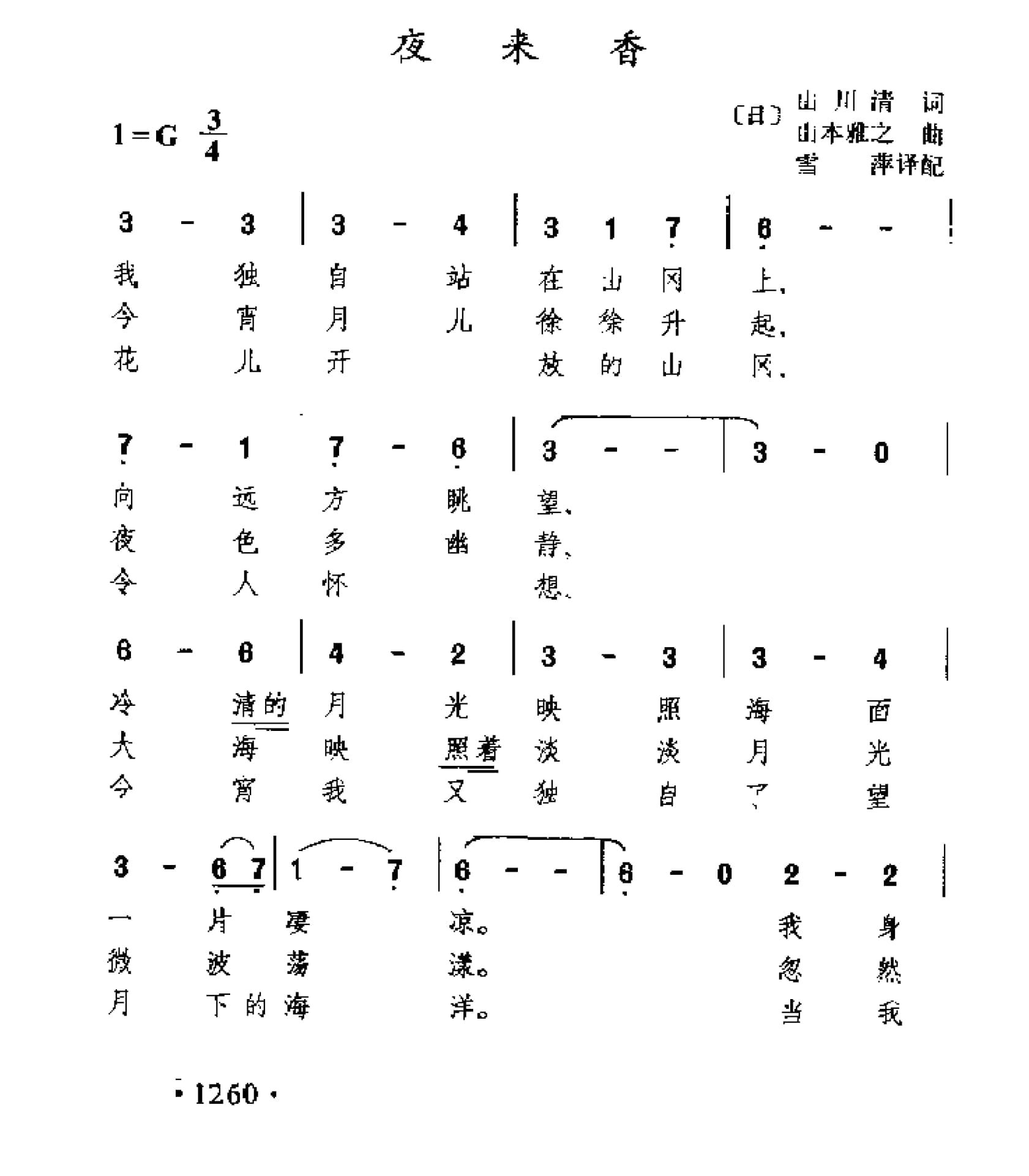 名称:夜来香 日 山本雅之曲国家:日本分类:歌谱子类:外国歌谱类型:简谱/五线谱文件格式:jpg