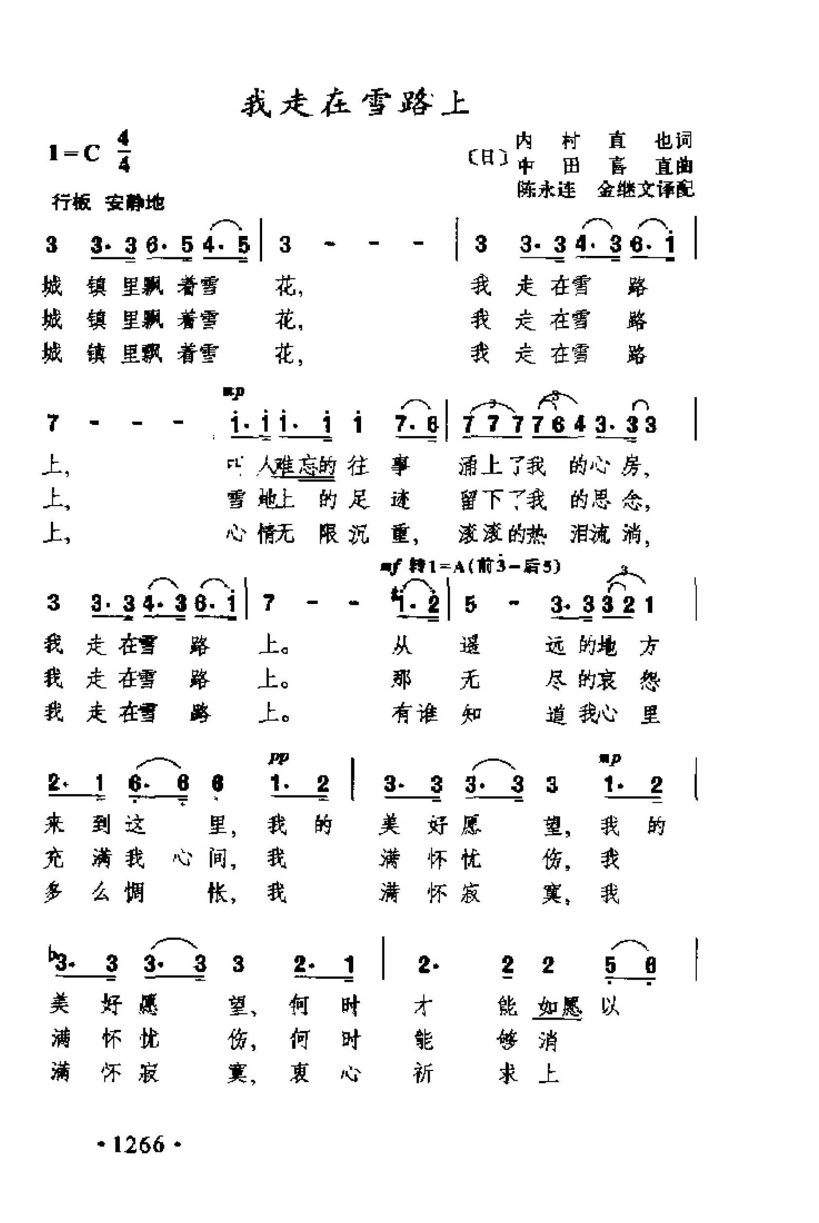 名称:我走在雪路上 日 中田喜直曲国家:日本分类:歌谱子类:外国歌谱类型:简谱/五线谱文件格式:jpg