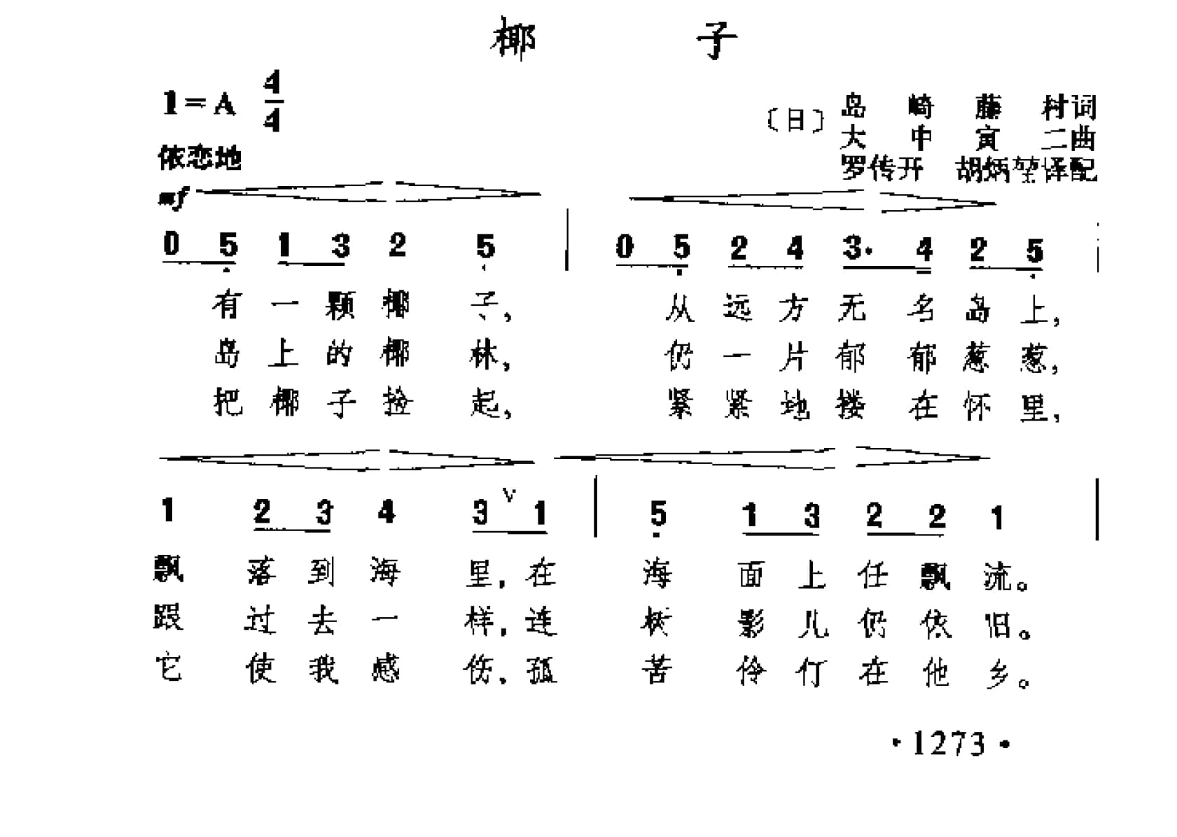 名称:椰子 日 大中寅二曲国家:日本分类:歌谱子类:外国歌谱类型:简谱/五线谱文件格式:jpg