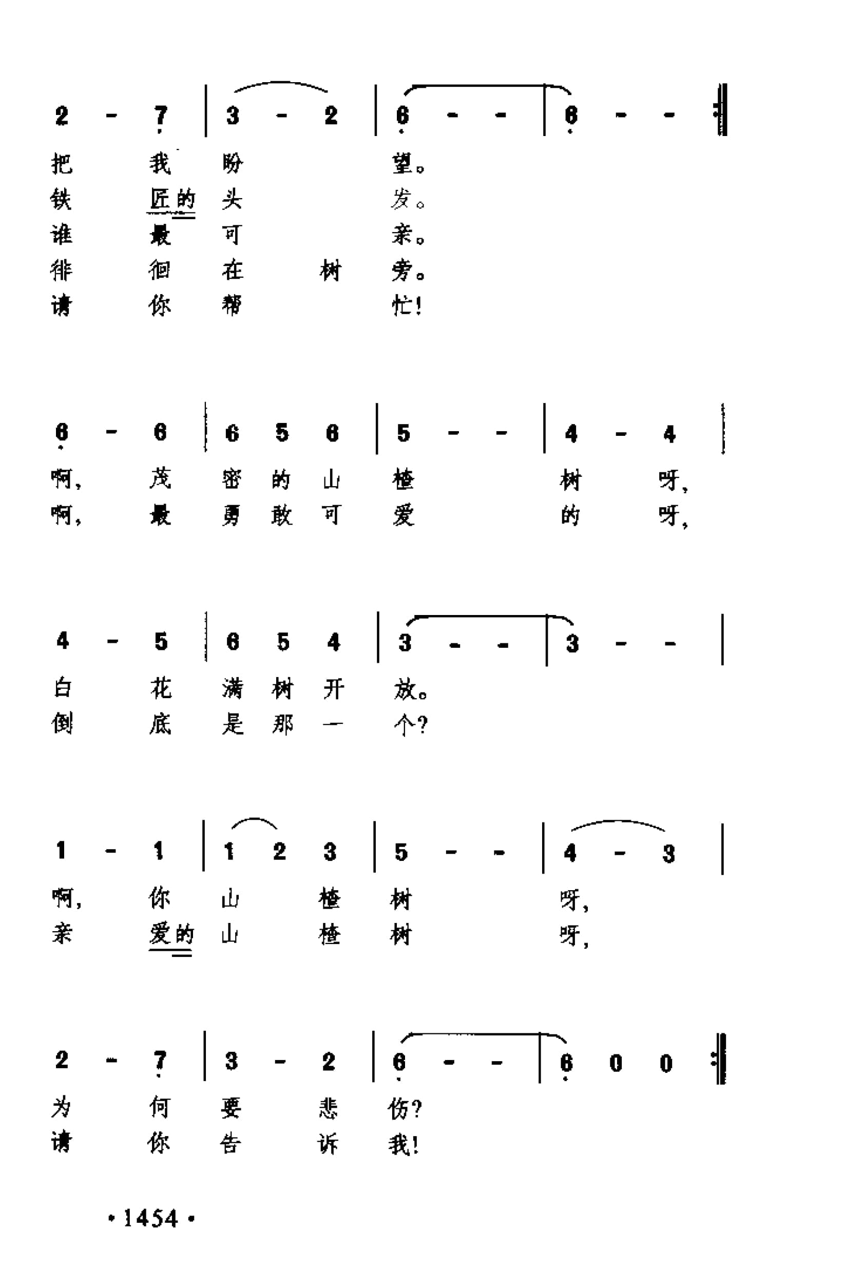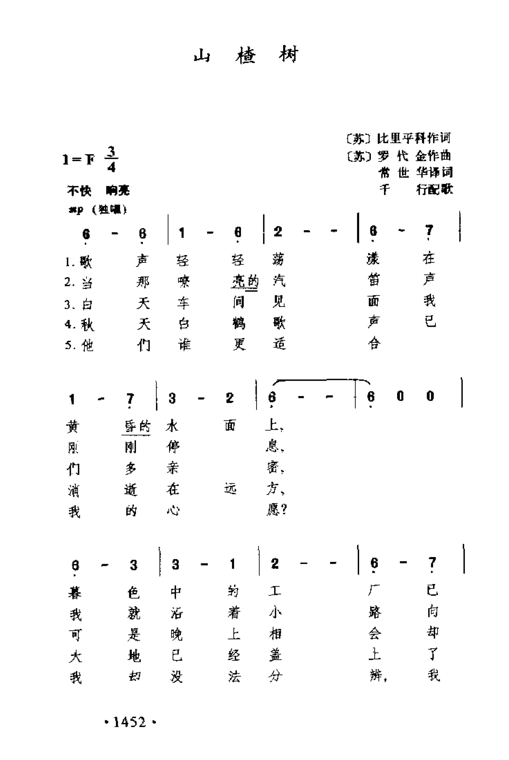 名称:山楂树 苏 罗代金曲国家:中国分类:歌谱子类:外国歌谱类型:简谱/五线谱文件格式:jpg
