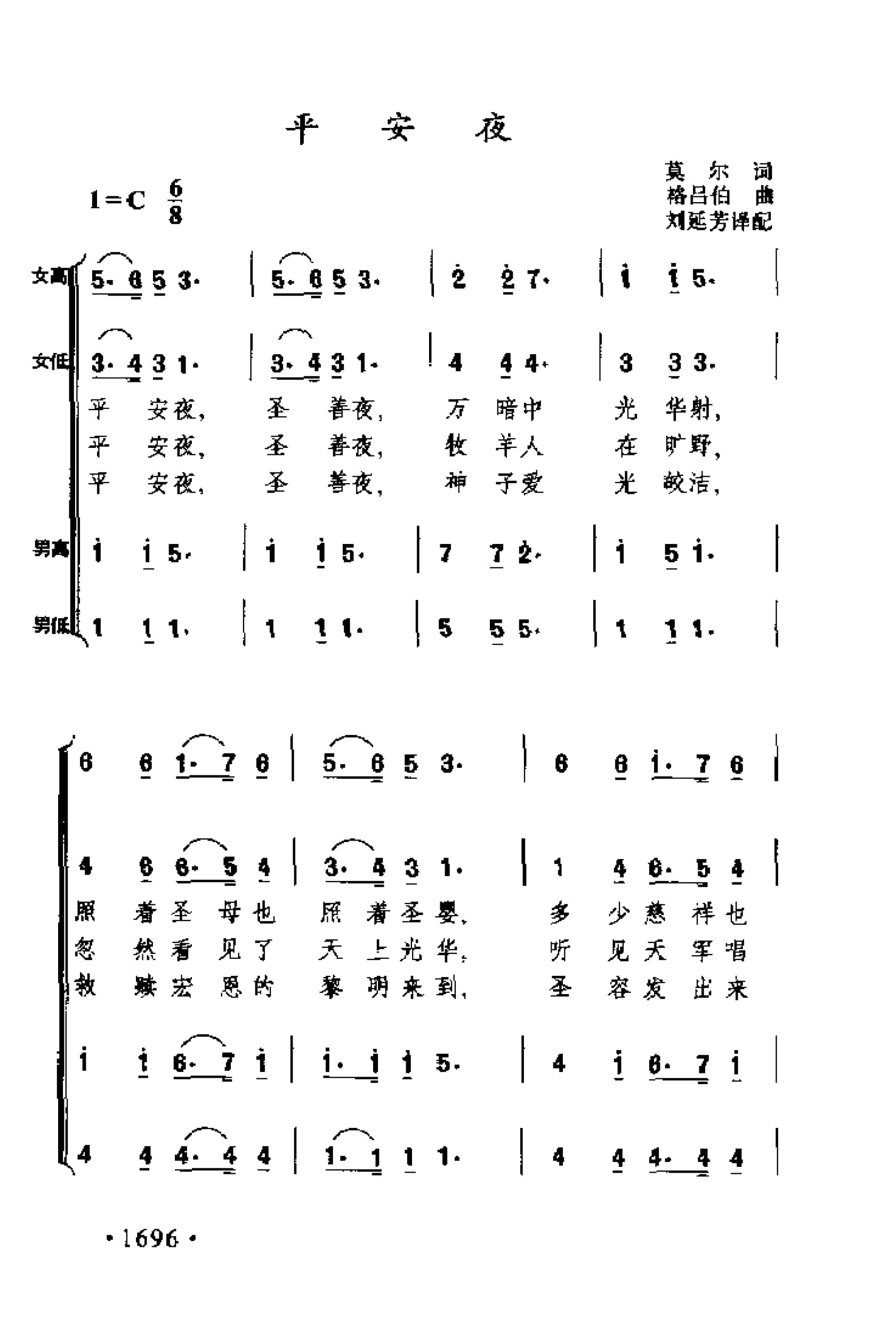 名称:平安夜 欧洲歌曲 格吕伯曲国家:中国分类:歌谱子类:外国歌谱类型:简谱/五线谱文件格式:jpg