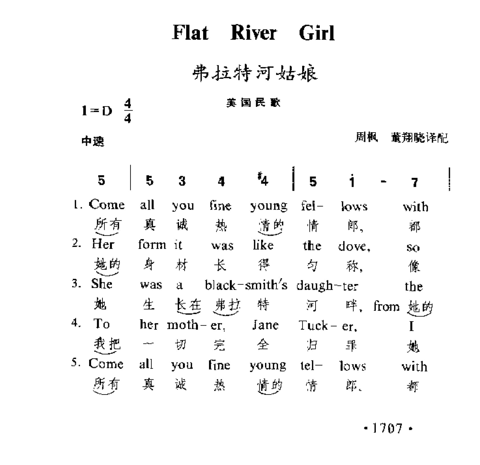 名称:弗拉特河姑娘 美国民歌国家:美国分类:歌谱子类:外国歌谱类型:简谱/五线谱文件格式:jpg