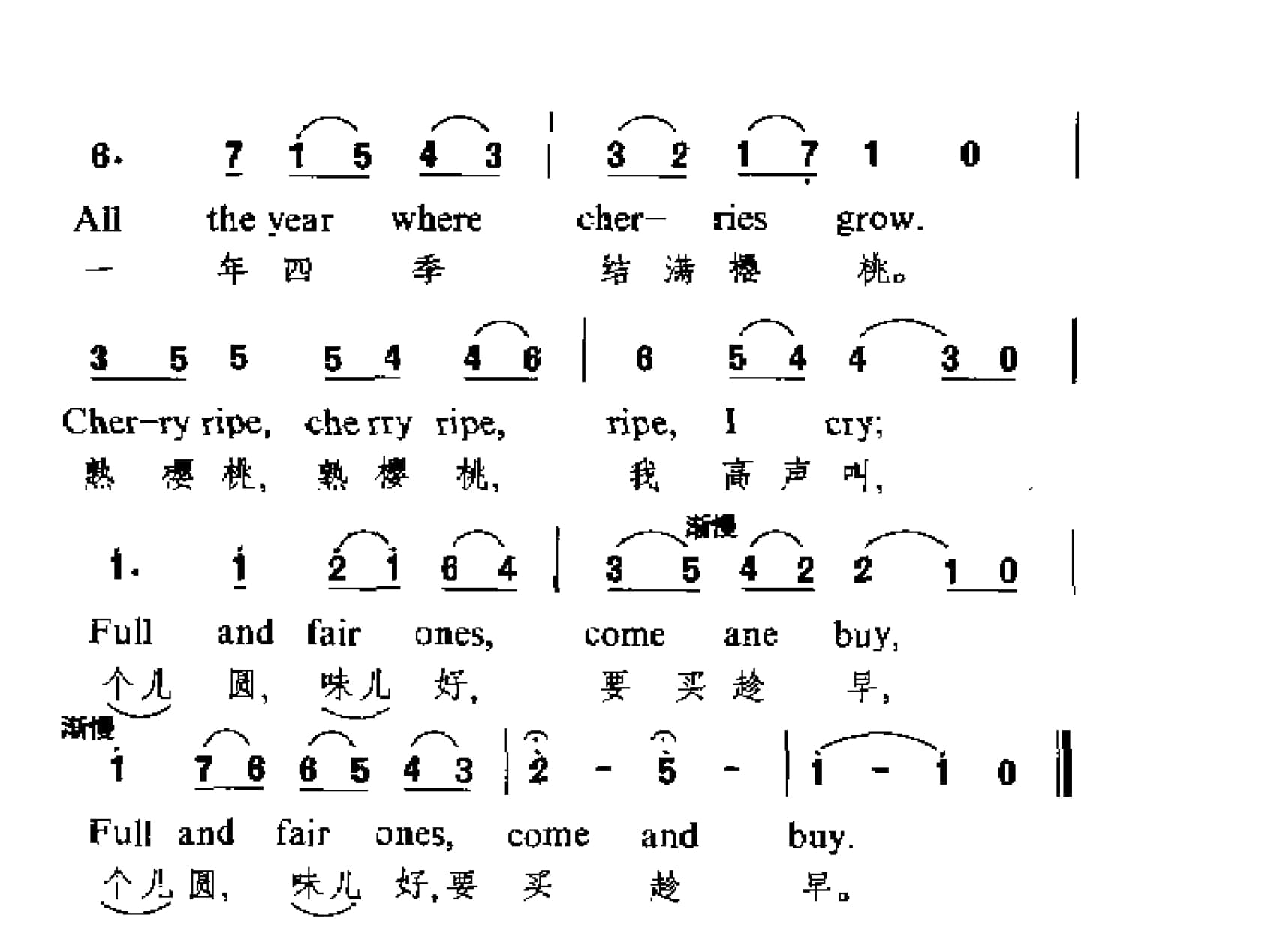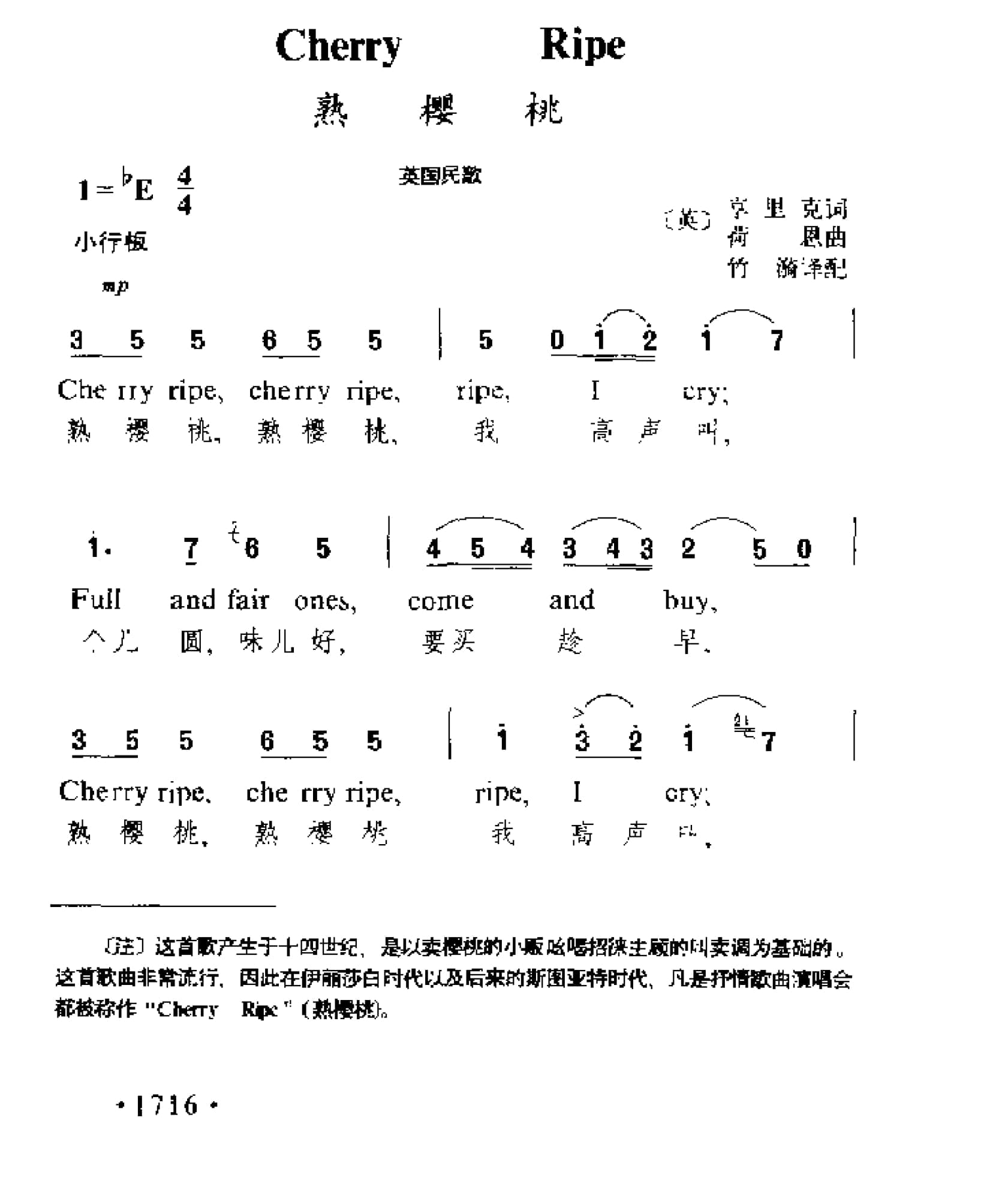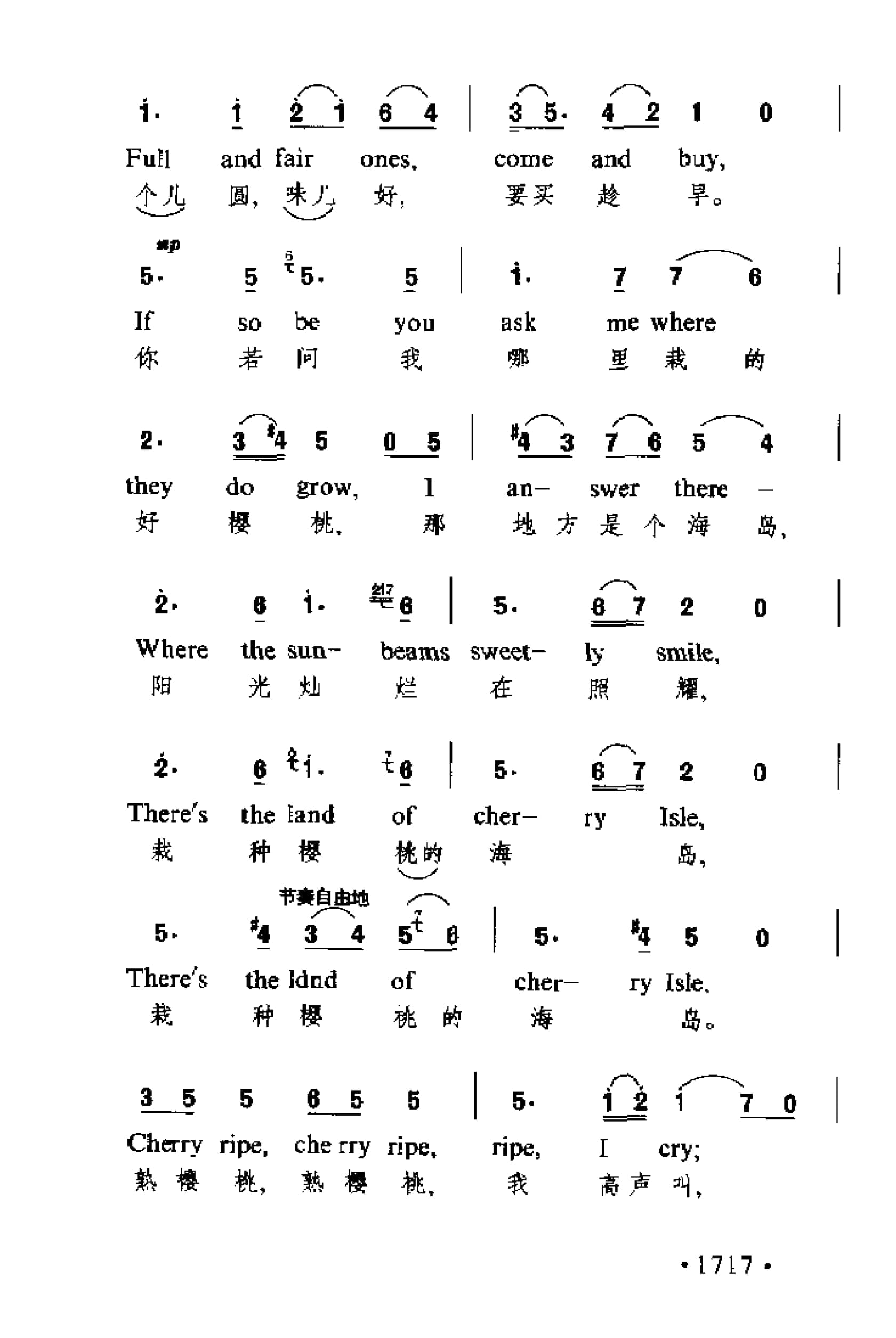 名称:熟樱桃 英 荷恩曲国家:英国分类:歌谱子类:外国歌谱类型:简谱/五线谱文件格式:jpg