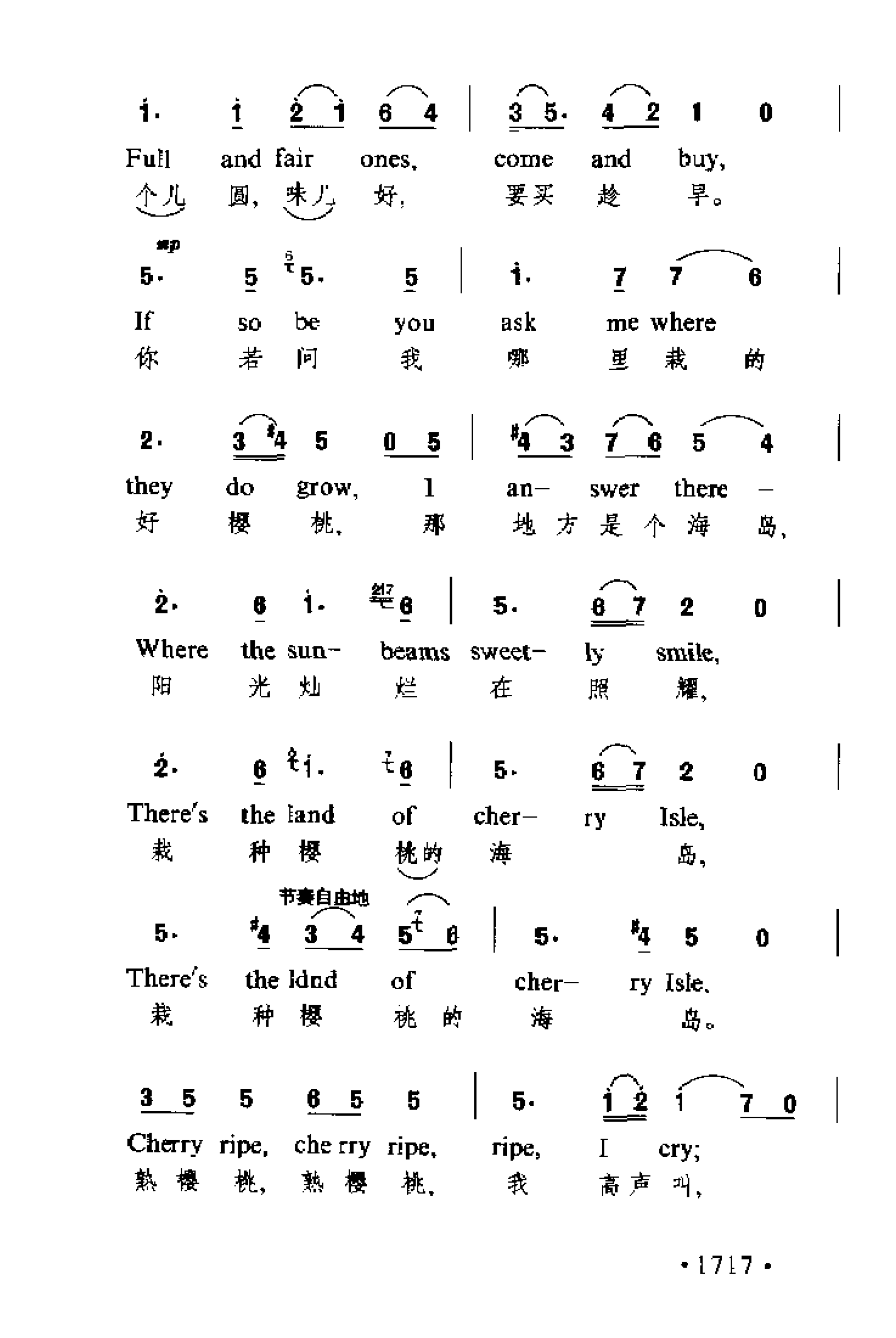 熟樱桃(英)荷恩曲简谱歌词是曲谱查询网于2025年02月10日 15:02:52更新在外国曲谱频道中的内容,收录在外国曲谱栏目中;曲谱查询网分享的熟樱桃(英)荷恩曲简谱五线谱高清图片,欢迎在线免费下载;曲谱查询网无需注册,即可直接下载海量歌曲谱与乐器学习相关资料。