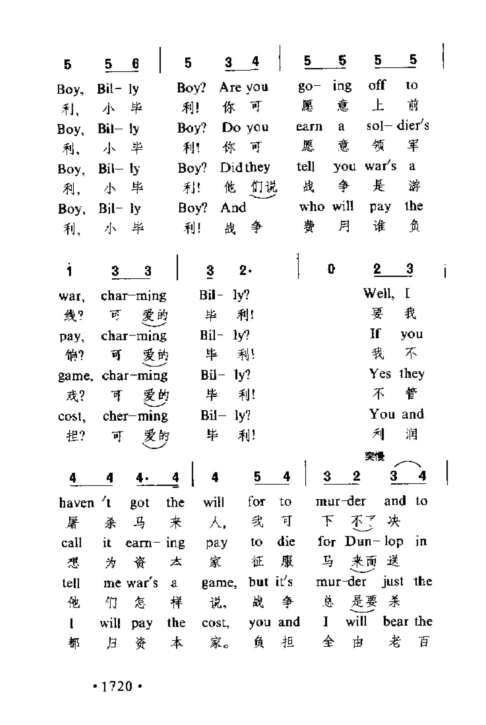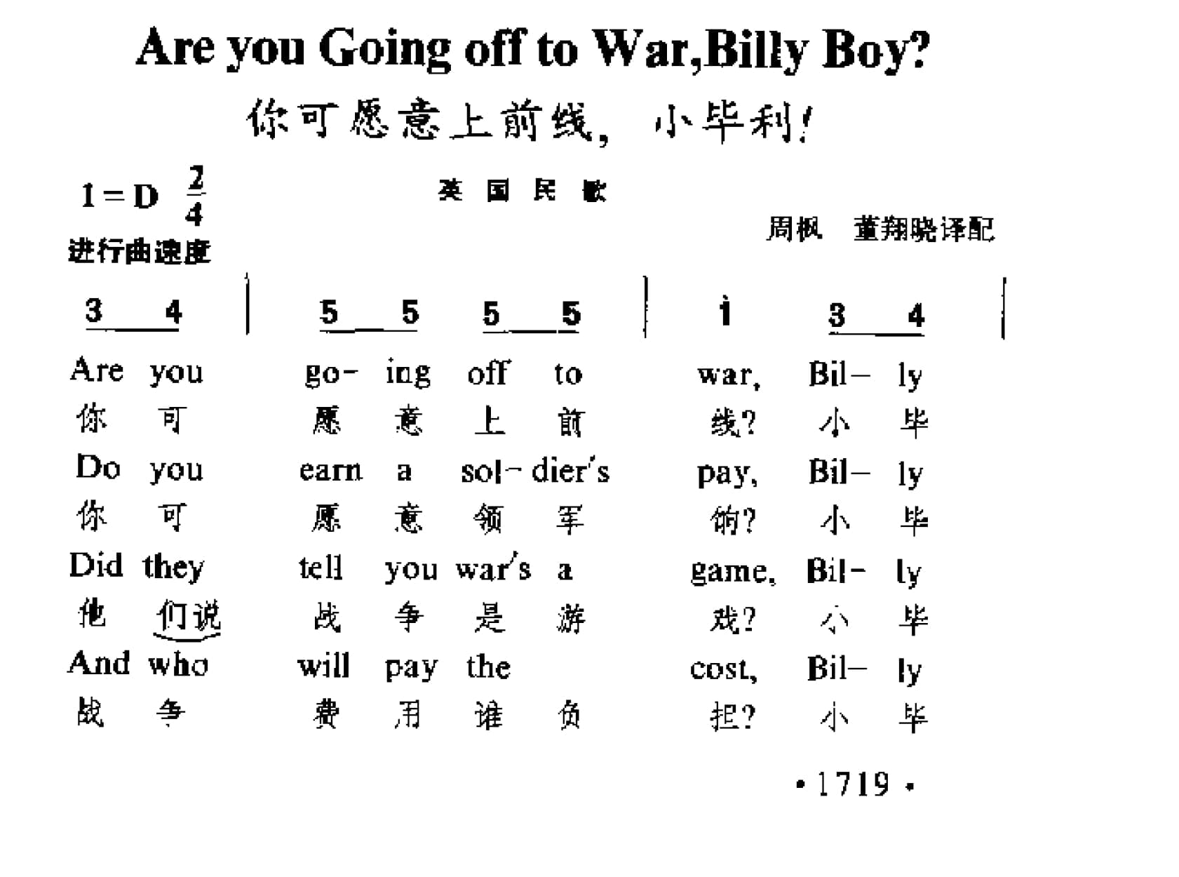 名称:你可愿意上前线,小毕利? 英 荷恩曲