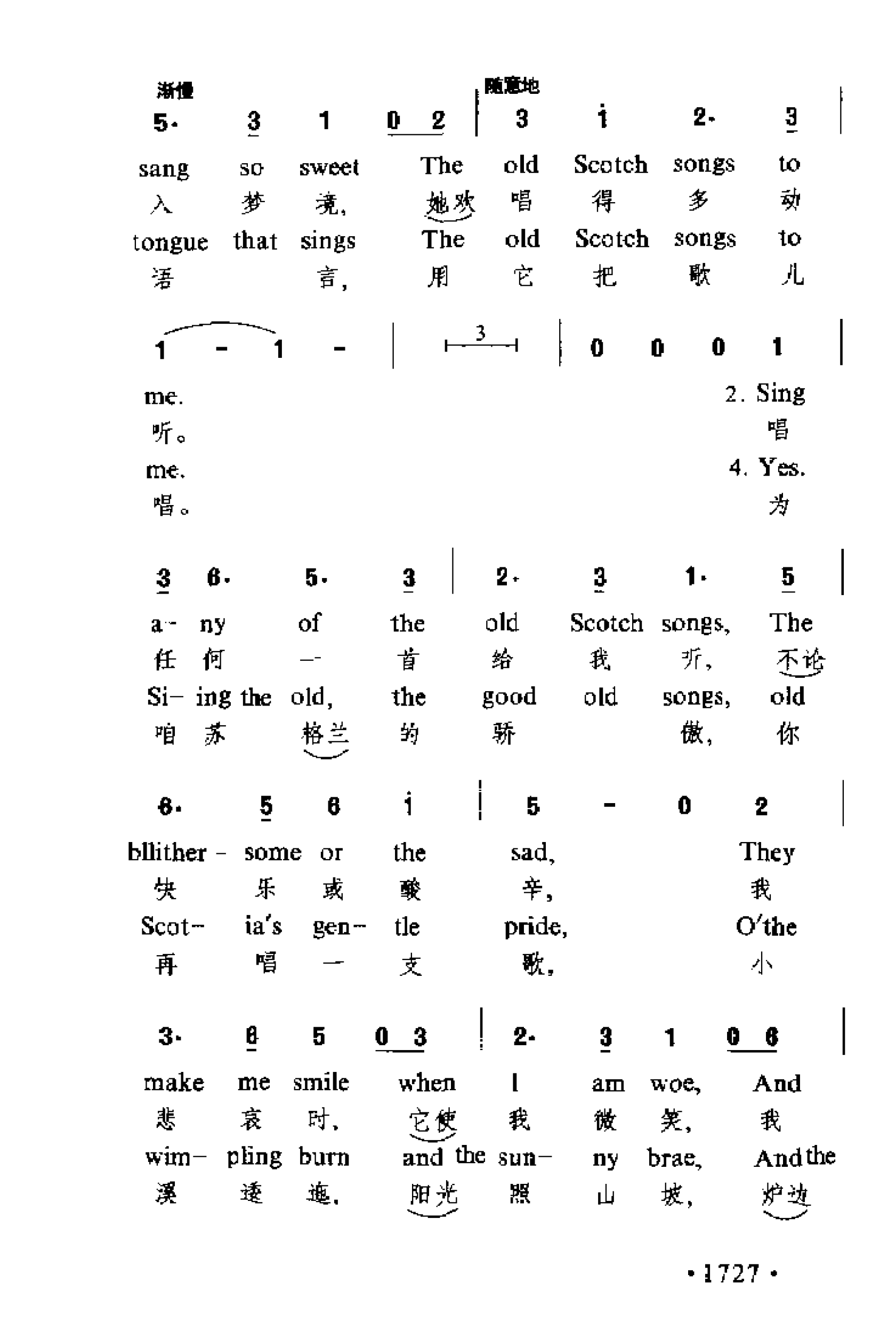 唱古老的苏格兰歌给我听 苏格兰民歌简谱歌词是曲谱查询网于2025年02月10日 15:05:11更新在外国曲谱频道中的内容,收录在外国曲谱栏目中;曲谱查询网分享的唱古老的苏格兰歌给我听 苏格兰民歌简谱五线谱高清图片,欢迎在线免费下载;曲谱查询网无需注册,即可直接下载海量歌曲谱与乐器学习相关资料。