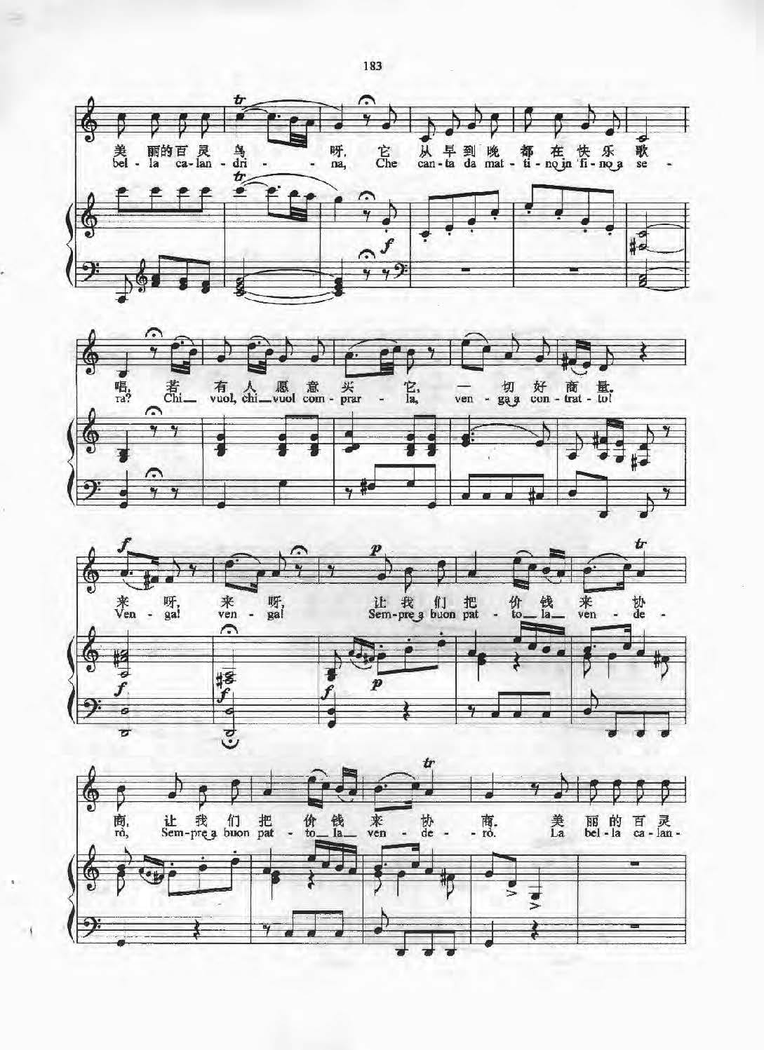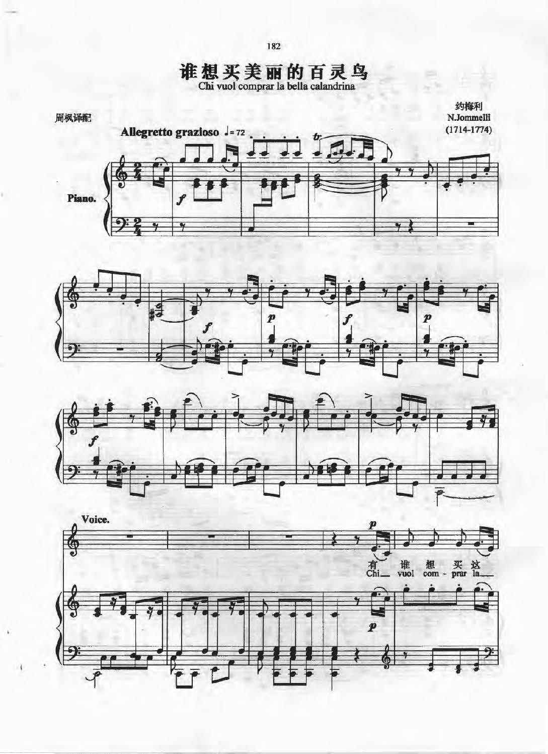 名称:意大利歌曲:谁想买美丽的百灵鸟 Chi vuol comprar 约梅利 N.Jommelli,1714 1774 五线谱国家:意大利分类:歌谱子类:外国歌谱类型:五线谱文件格式:jpg意大利歌曲:谁想买美丽的百灵鸟(Chi vuol comprar)约梅利(N.Jommelli,1714-1774)五线谱