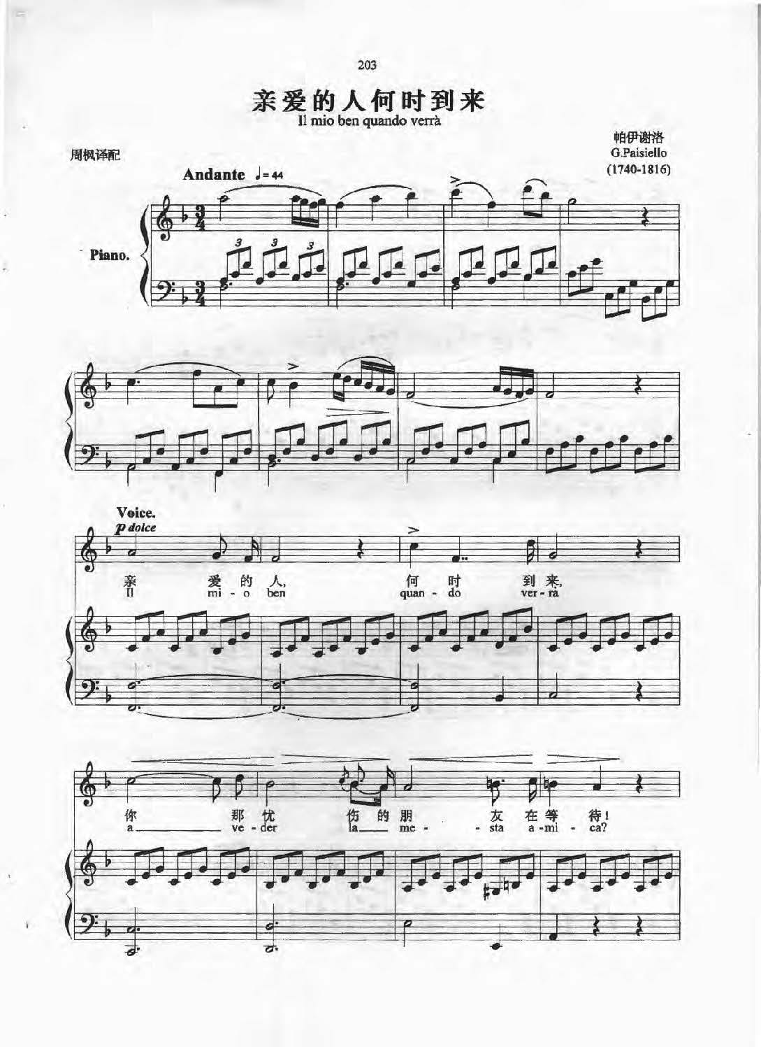 名称:意大利歌曲:亲爱的人何时到来 Il mio ben quando verrà 帕伊谢洛 G.Paisiello,1740 1806 五线谱国家:意大利分类:歌谱子类:外国歌谱类型:五线谱文件格式:jpg意大利歌曲:亲爱的人何时到来(Il mio ben quando verrà)帕伊谢洛(G.Paisiello,1740-1806)五线谱
