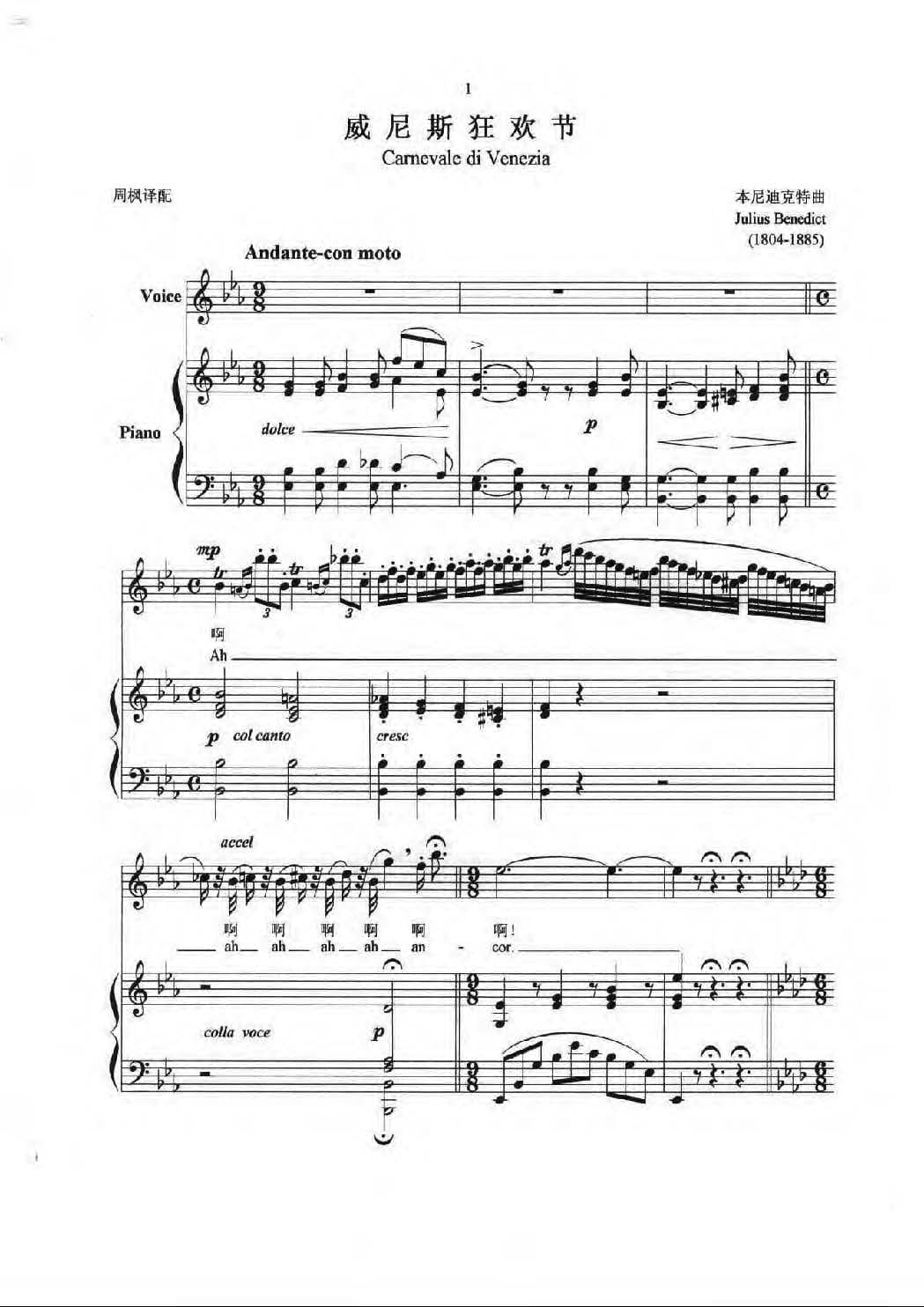 名称:意大利歌曲 威尼斯狂欢节 Carnevale di Venezia 本尼迪克特 Julius Benedict 1804 1885 五线谱国家:意大利分类:歌谱子类:外国歌谱类型:五线谱文件格式:jpg[意大利歌曲]威尼斯狂欢节(Carnevale di Venezia)本尼迪克特(Julius Benedict 1804-1885)五线谱