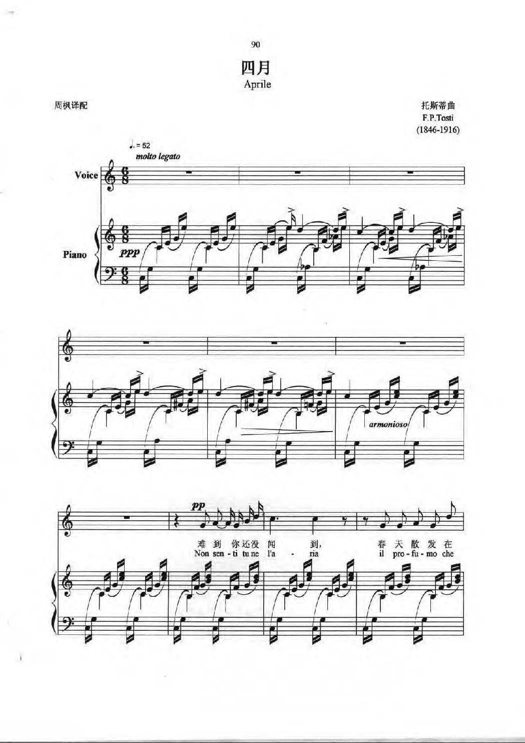 名称:意大利歌曲 四月 Aprile 托斯蒂 F.P.Tosti 1846 1916 五线谱国家:意大利分类:歌谱子类:外国歌谱类型:五线谱文件格式:jpg[意大利歌曲]四月(Aprile)托斯蒂(F.P.Tosti 1846-1916)五线谱