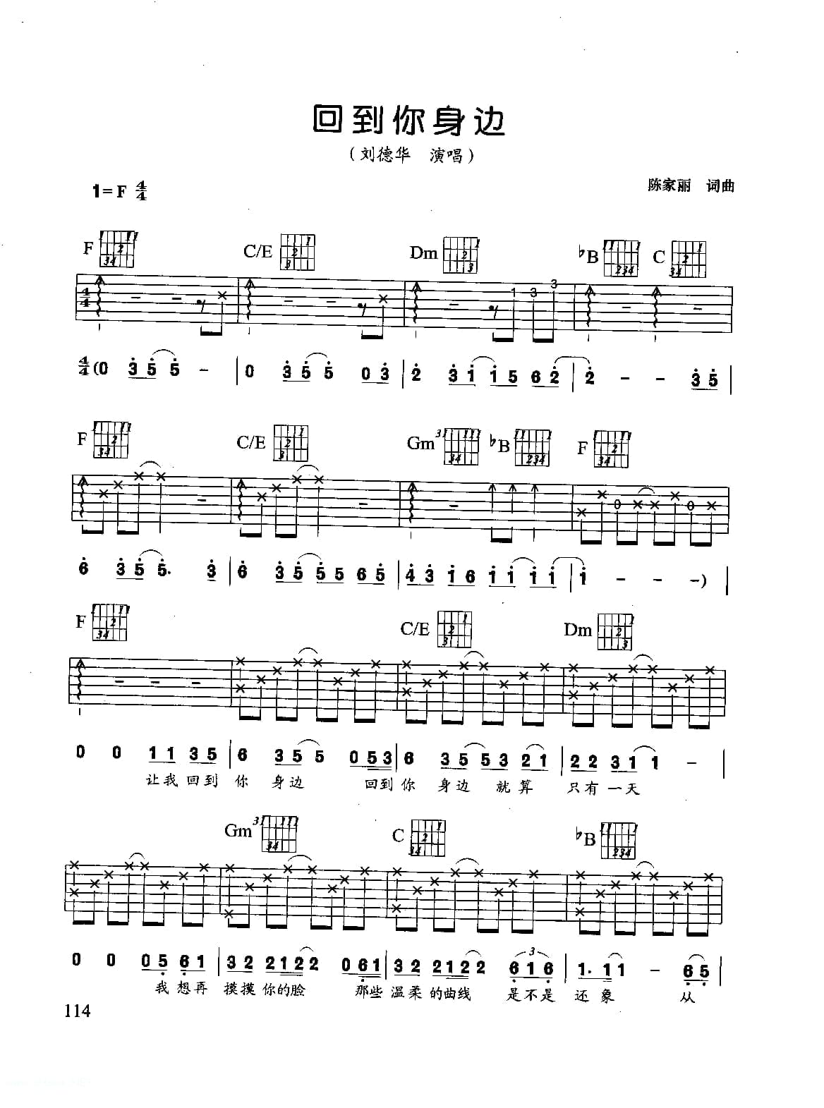 刘德华歌曲吉他六线谱:回到你身边(附简谱歌词)