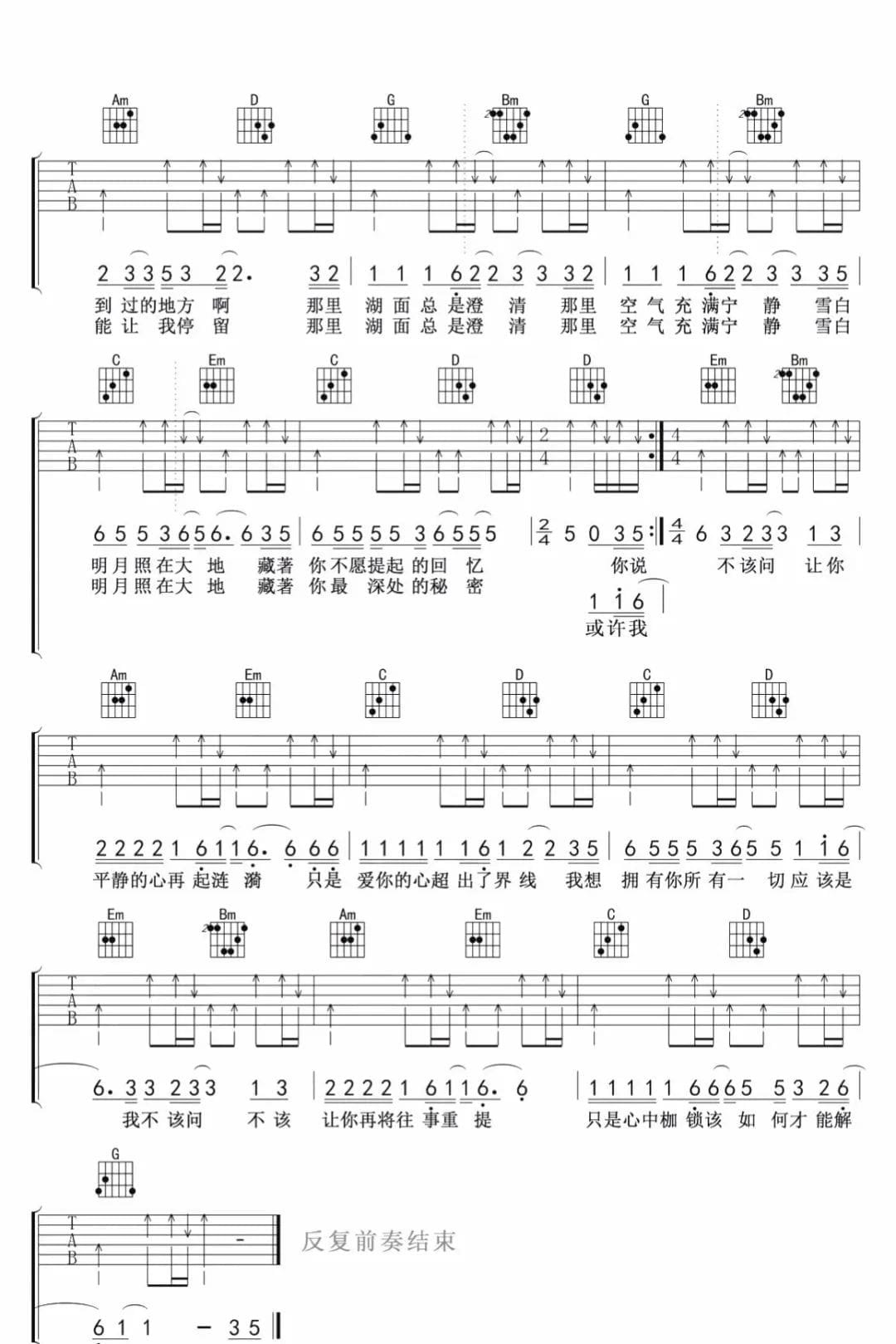 名称:伍佰 挪威的森林 G调吉他谱 扫弦版