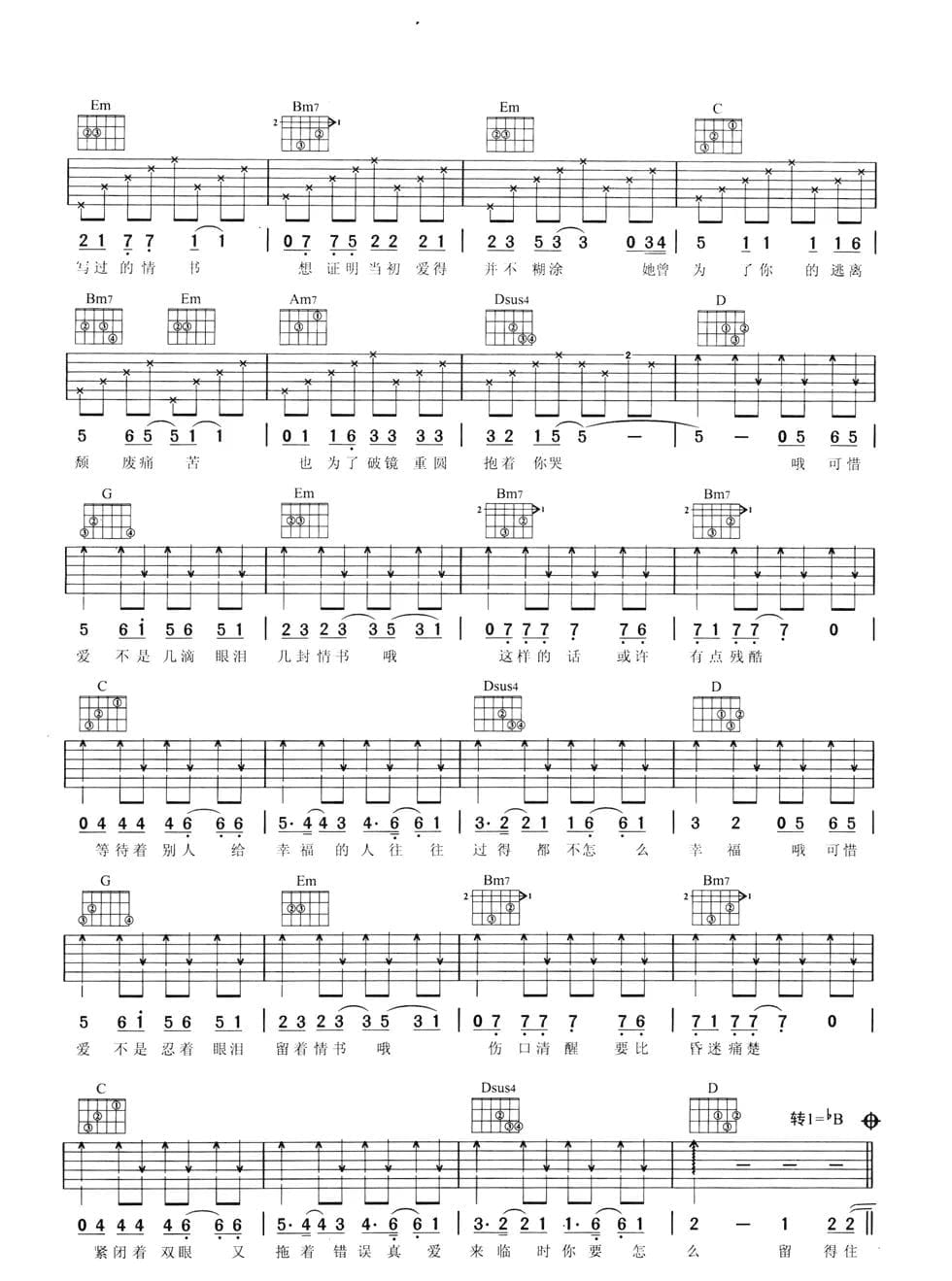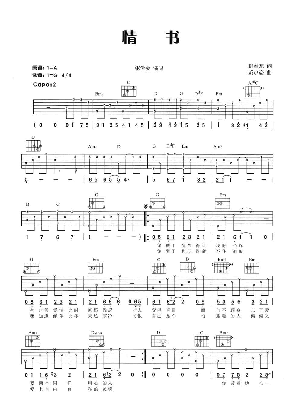 张学友《情书》吉他谱_高清吉他谱