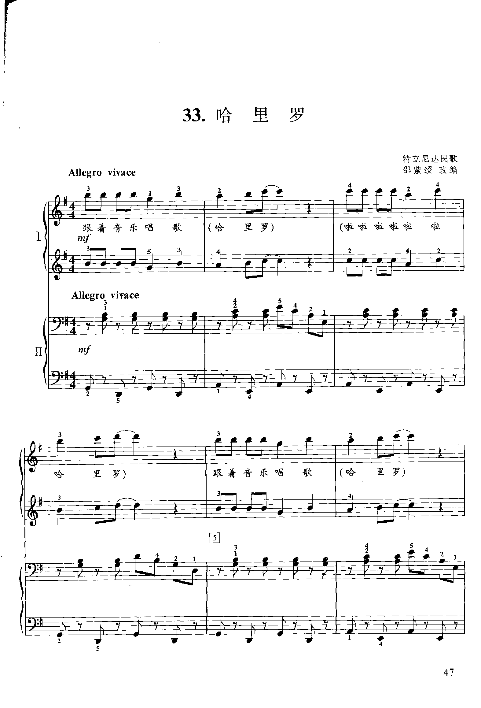 少儿钢琴四手联弹曲目:哈哩罗 特立尼达民歌 邵紫绶改编(五线谱)