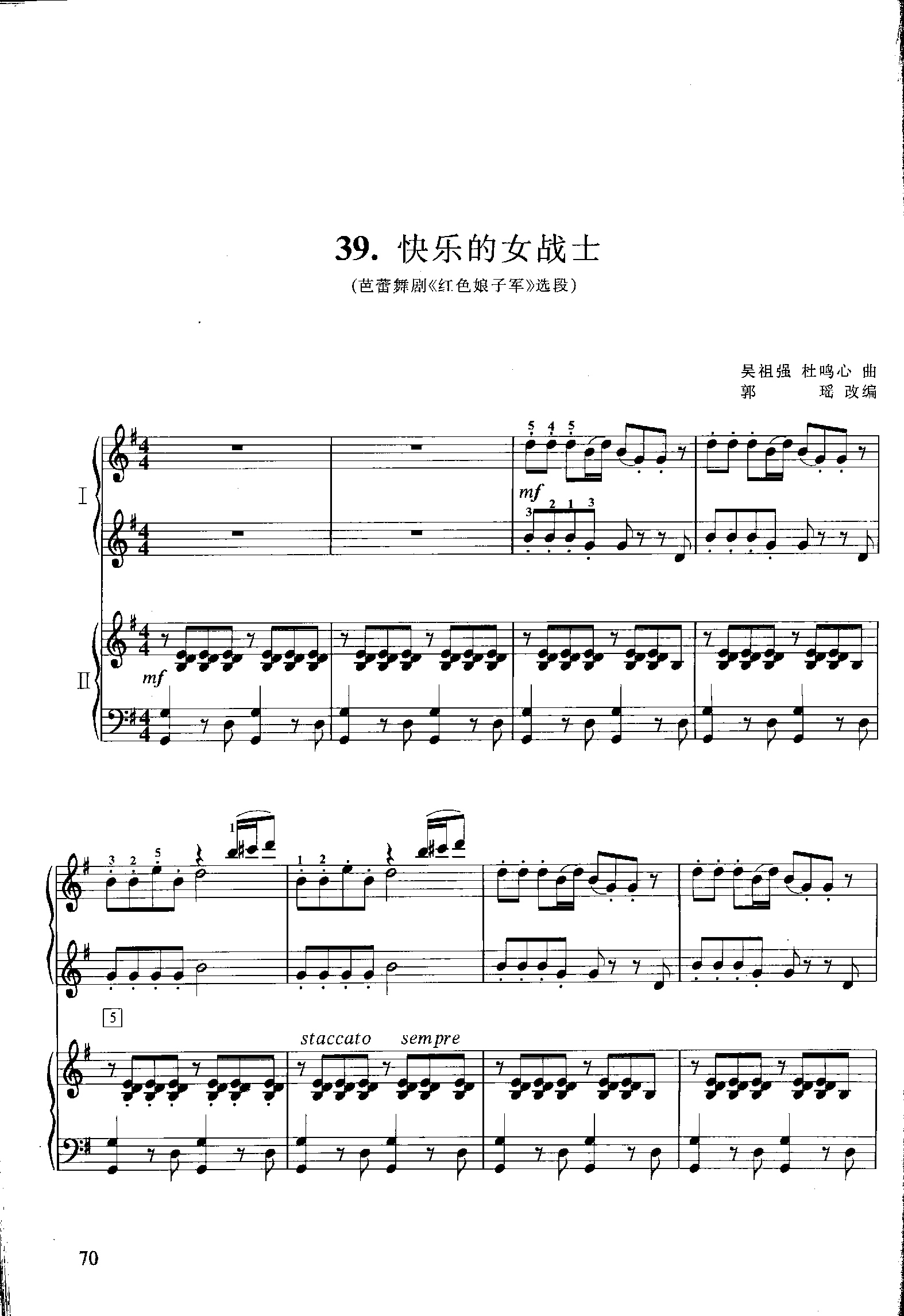 少儿钢琴四手联弹曲目:快乐的女战士 吴祖强 杜鸣心曲 郭瑶改编(五线谱)