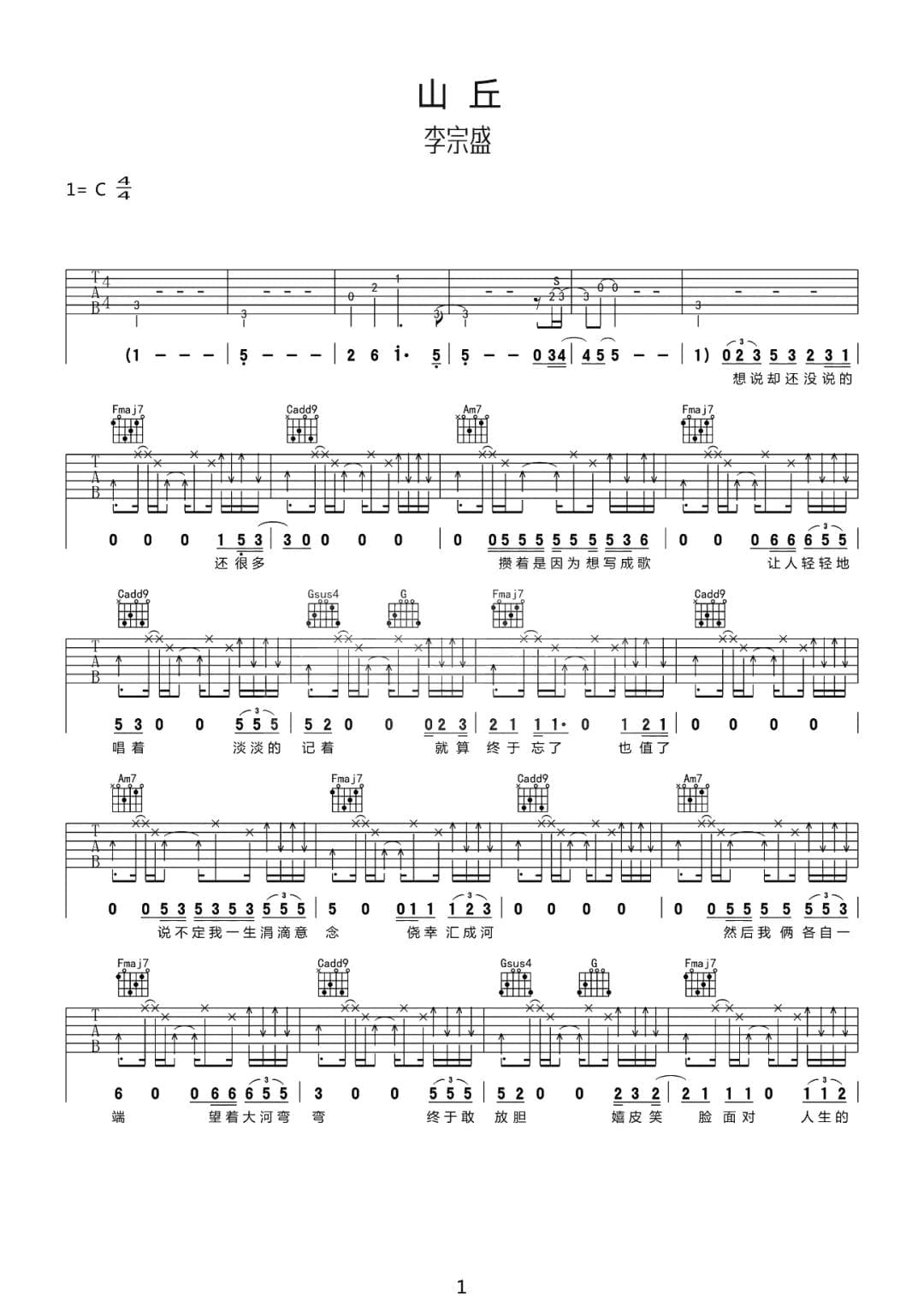名称:李宗盛 山丘 C调吉他谱_高清吉他谱