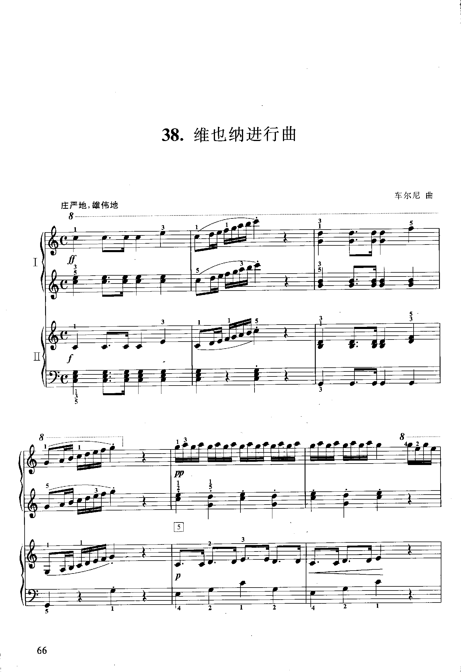 少儿钢琴四手联弹曲目:维也纳进行曲 车尔尼曲(五线谱)