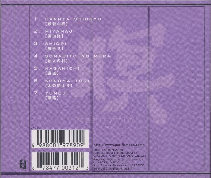 瞑-是一种意念,一种自我的境界,当一切都安静下来的时候身边仿佛出现的精灵会带起你的思绪,人们用轻柔而富有底蕴的声音来激发自己的灵感,让自己的思想犹如涓涓细流汇入大河般的扩散开去,迷离中寻找属于自己的那点感动。专辑开始的感觉有点神秘,颇有鬼蜮之声的味道,仿佛黑夜中一盏飘忽的风灯在远处若隐若现,永远无法靠近却一直处在你的视线内,也许这就是一种导引。适合在黄昏甚至黑夜里清静的音乐,只有闭上眼睛你才能看到更深处的东西。开悟-内心思想的升华,瞑-让真理战胜欲望,遏制自己的冲动,进入平的境界,让灵魂出鞘,脱离自己看自己,你能发现平日里不一样的自我,抛开杂念,让自己的精神力量发挥极致,随着“瞑”的引流,渐渐的睡去,清空烦躁的大脑,整理紊乱的心智。一切都在眼睛睁开的时候得以解决。坐禅,原本就是陶冶情操的方法,意念在其中,身心则在外,无是万物的更本,虚无之感,超脱俗事。瞑之感,味泽其中,意远深长…………