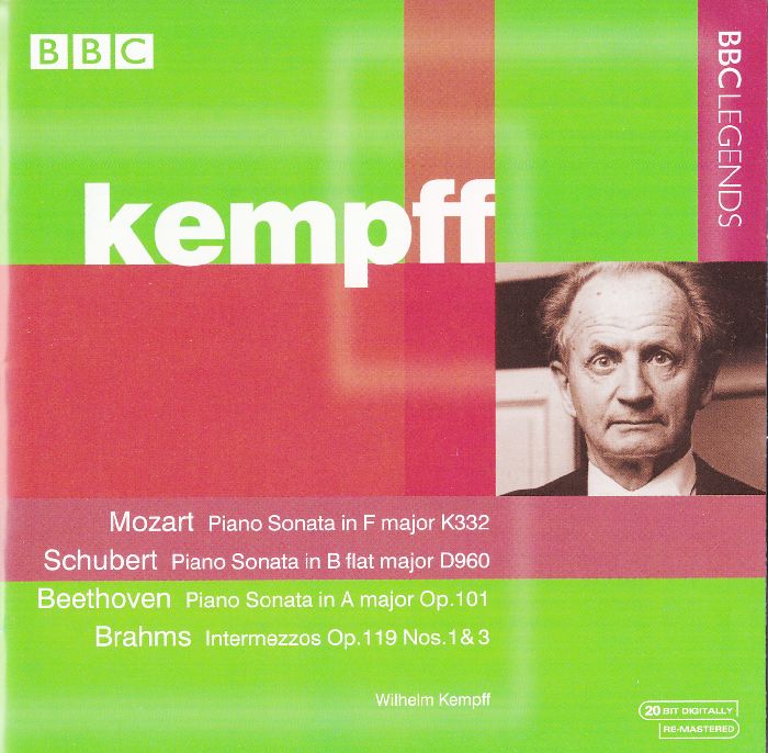 BBC Legends BBCL 4169. Kempff: Mozart - Piano Sonata in F Major K332, Schubert - Piano Sonata in B flat major D960, Beethoven - Piano Sonata in A major op.101, Brahms - Intermezzos op.119 no1, 3 (APE)