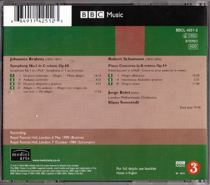 BBC Legends BBCL 4251. Tennstedt: Brahms – Symphony no.1, Schumann – Piano Concerto (APE)