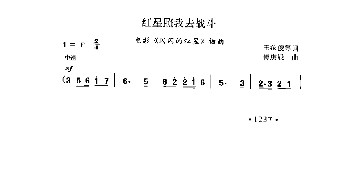 红星照我去战斗(电影《闪闪的红星》插曲)王汝俊等词 傅庚辰曲