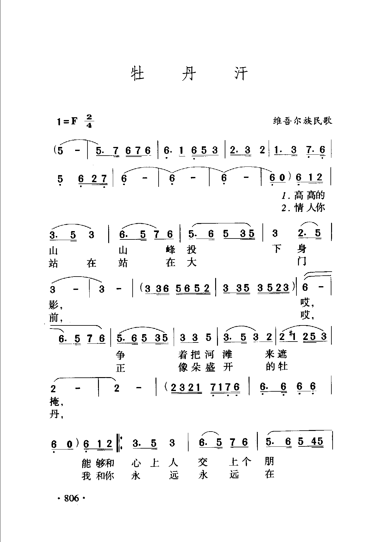 牡丹汗 维吾尔族民歌简谱歌词是曲谱查询网于2024年12月28日 19:25:58更新在乐谱大全频道中的内容,收录在乐谱大全栏目中;曲谱查询网分享的牡丹汗 维吾尔族民歌简谱五线谱高清图片,欢迎在线免费下载;曲谱查询网无需注册,即可直接下载海量歌曲谱与乐器学习相关资料。