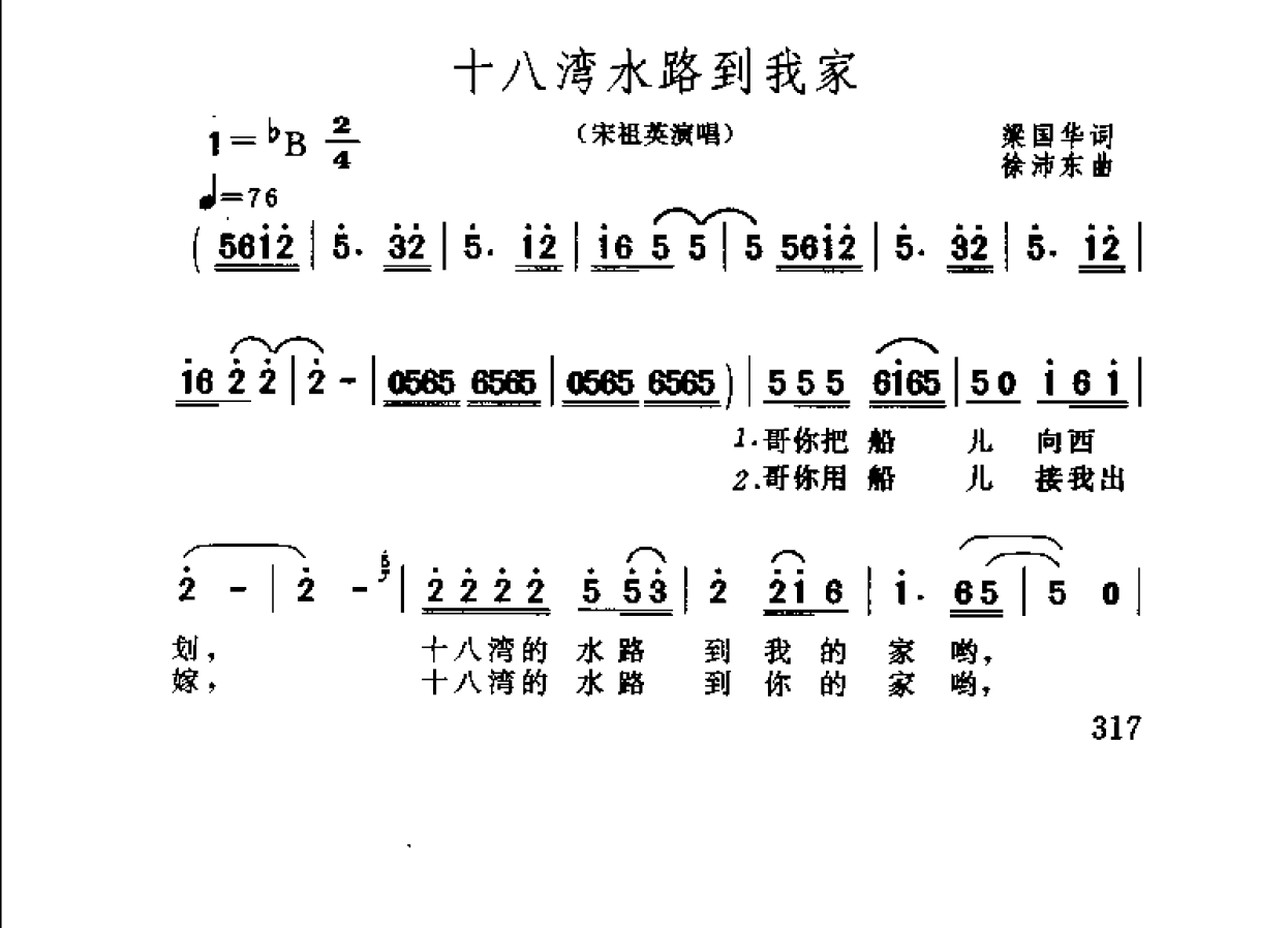 通俗歌曲简谱:十八湾水路到我家·1996梁国华词 徐沛东曲(宋祖英演唱)