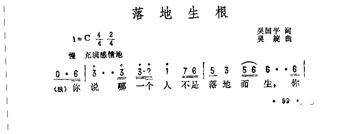 抒情歌曲简谱:落地生根 吴国平词 吴旋曲