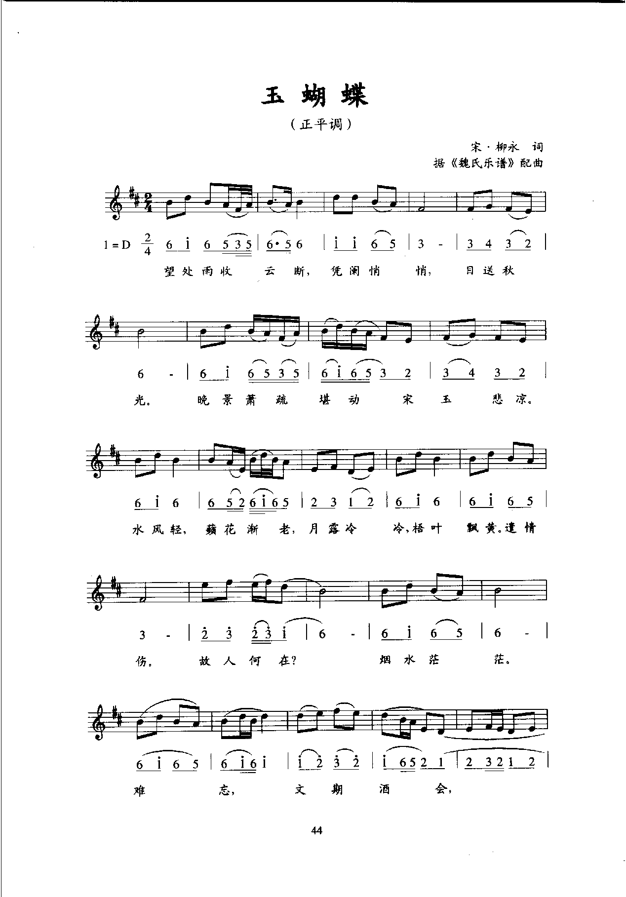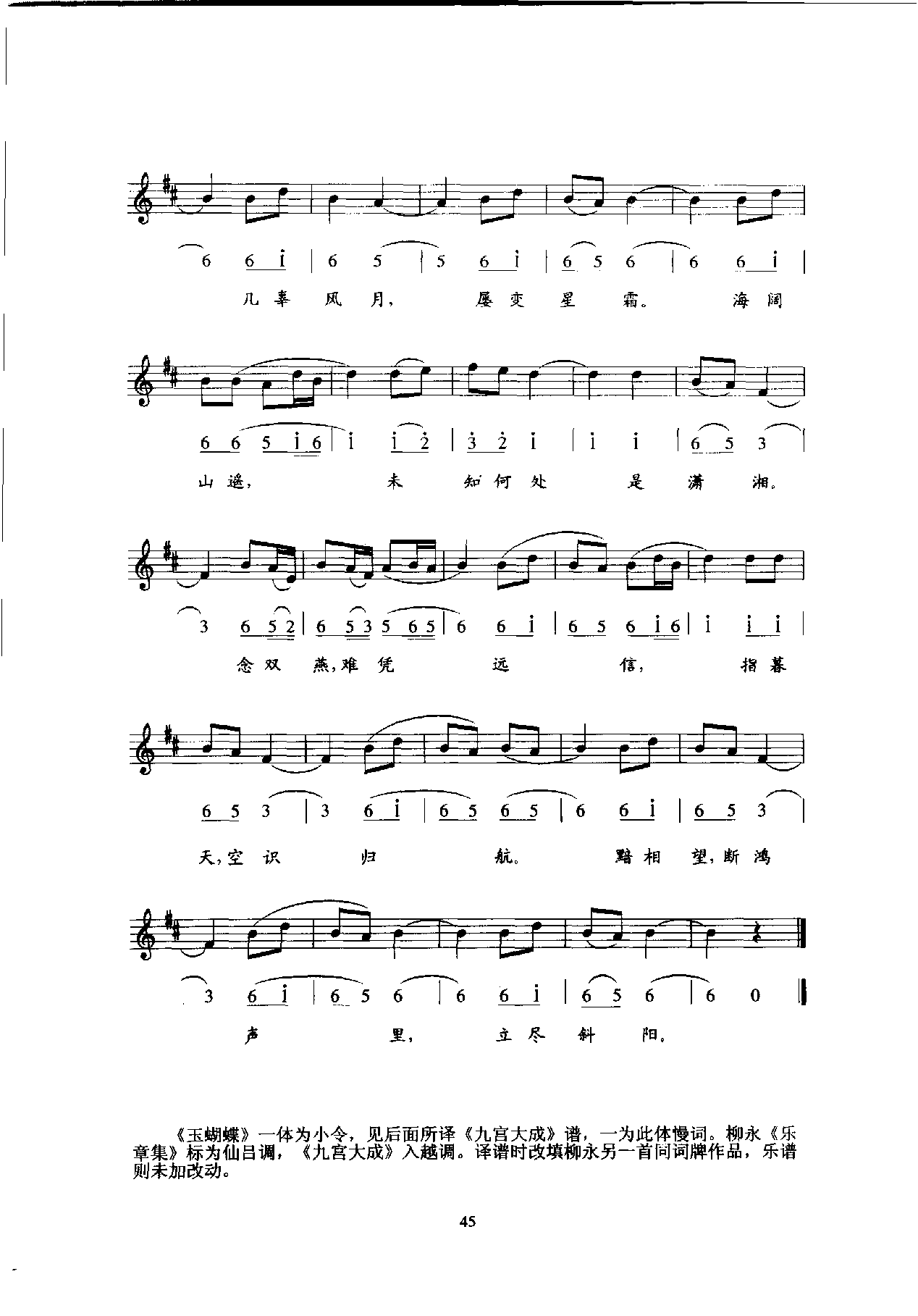 唐宋词古乐谱:玉蝴蝶(宋·柳永)五线谱