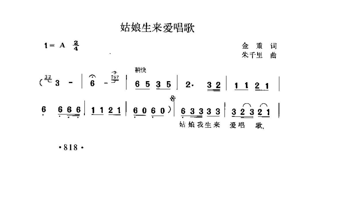 姑娘生来爱唱歌 金重词 朱千里曲