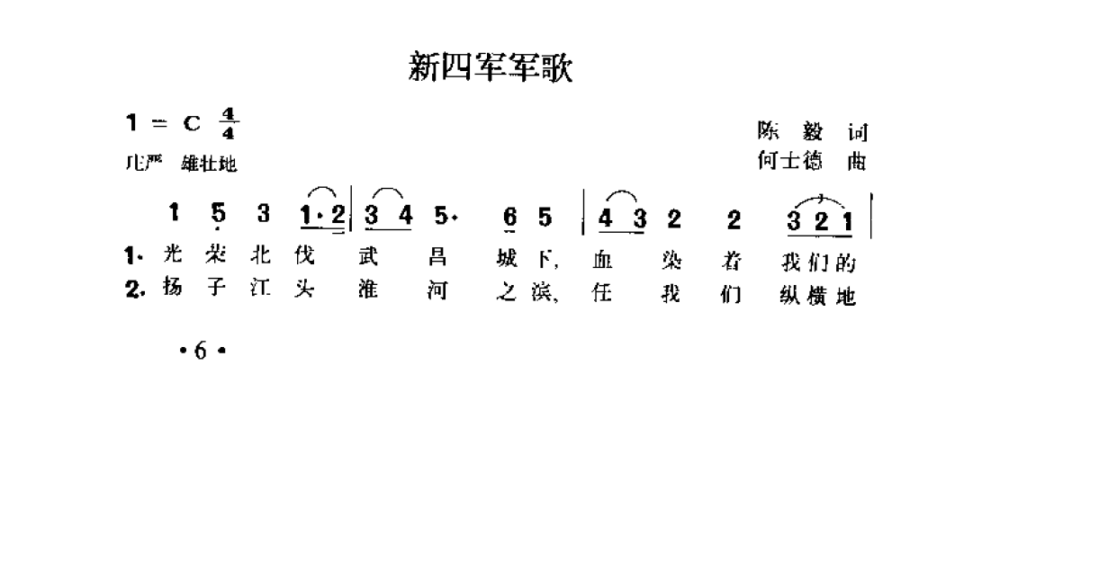 新四军军歌 陈毅词 何士德曲简谱歌词是曲谱查询网于2025年01月10日 10:28:34更新在乐谱大全频道中的内容,收录在乐谱大全栏目中;曲谱查询网分享的新四军军歌 陈毅词 何士德曲简谱五线谱高清图片,欢迎在线免费下载;曲谱查询网无需注册,即可直接下载海量歌曲谱与乐器学习相关资料。
