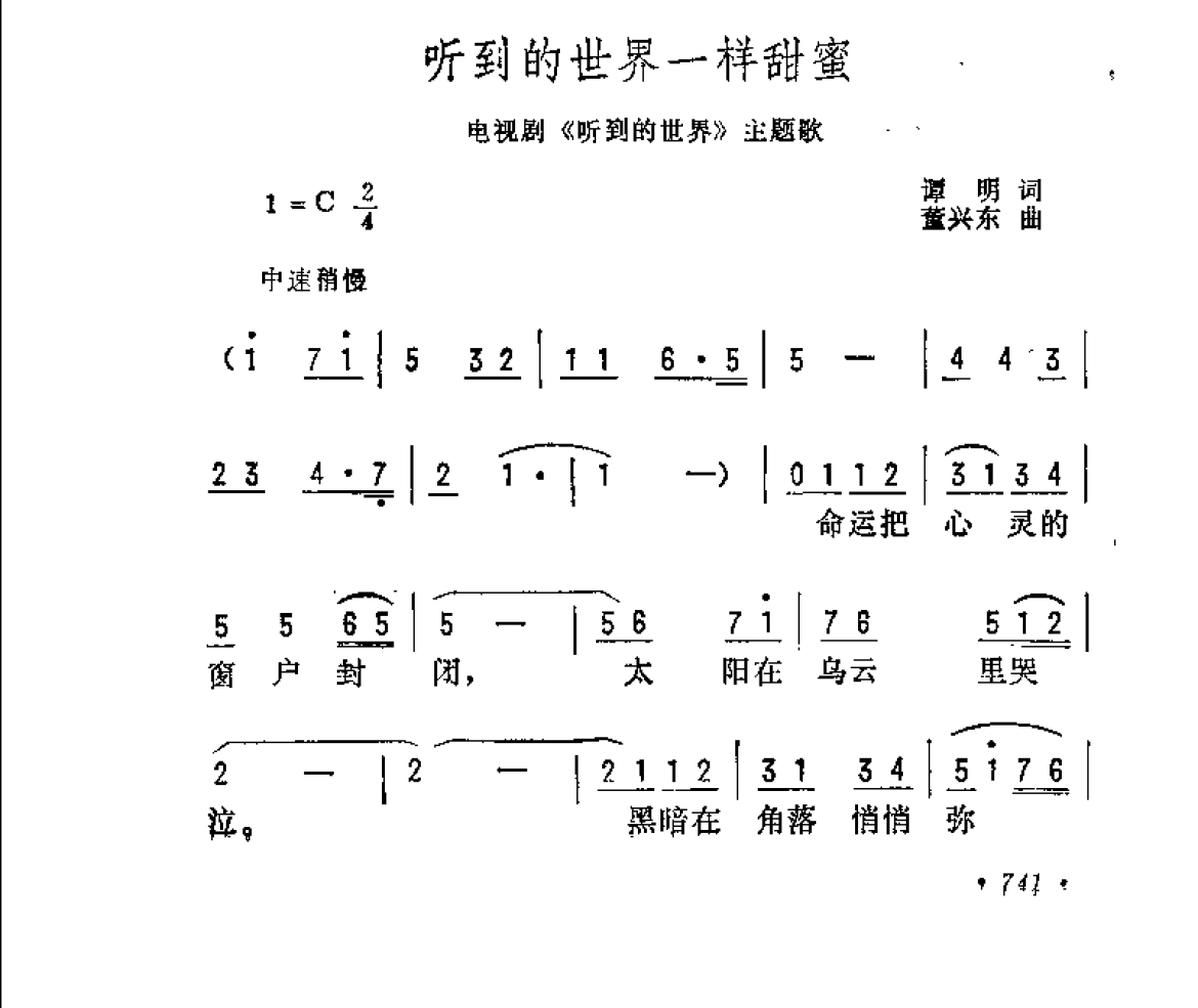 听到的世界一样甜蜜(电视剧《听到的世界》主题歌)谭明词 董兴东曲简谱歌词是曲谱查询网于2025年02月14日 16:40:16更新在乐谱大全频道中的内容,收录在乐谱大全栏目中;曲谱查询网分享的听到的世界一样甜蜜(电视剧《听到的世界》主题歌)谭明词 董兴东曲简谱五线谱高清图片,欢迎在线免费下载;曲谱查询网无需注册,即可直接下载海量歌曲谱与乐器学习相关资料。