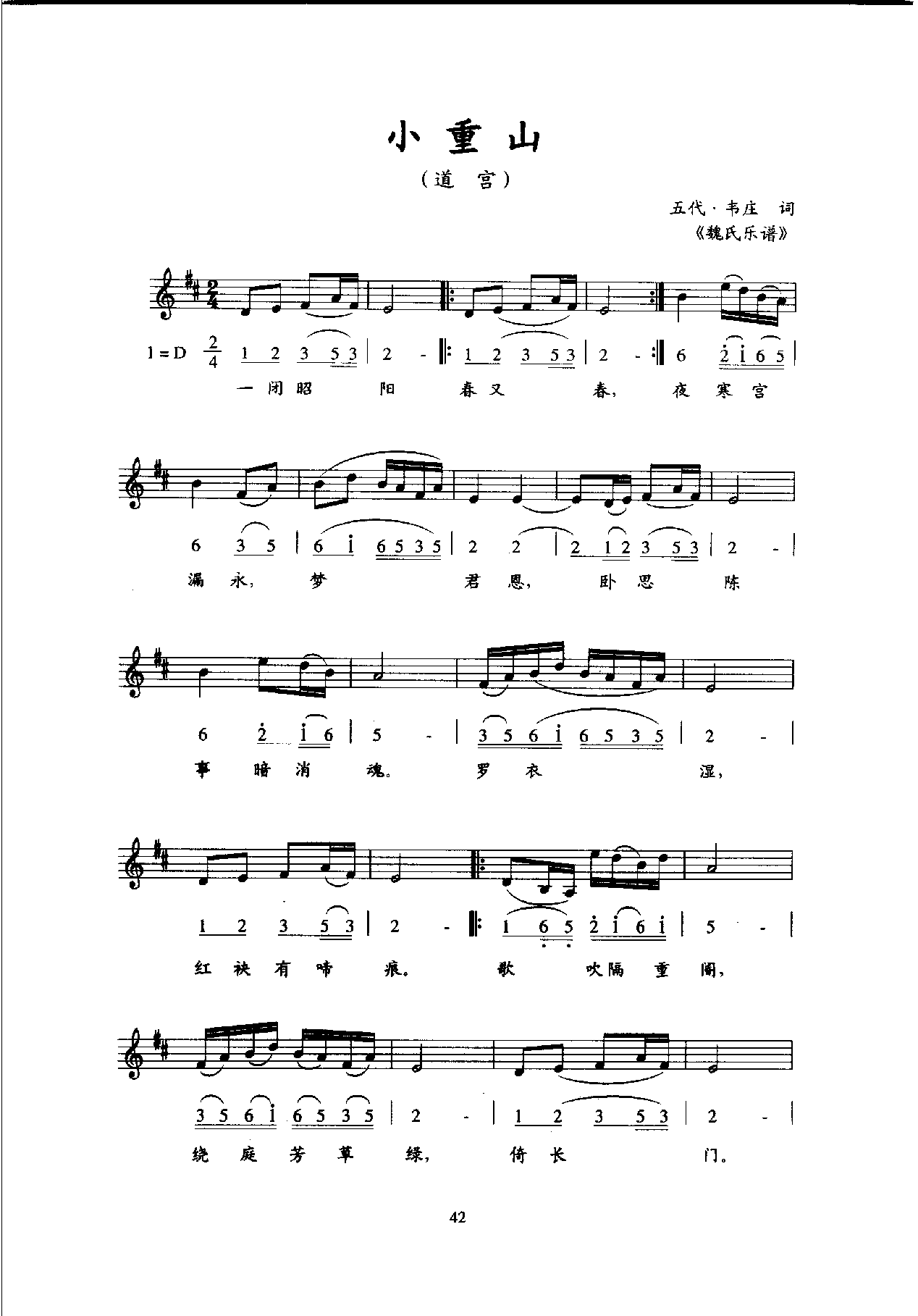 唐宋词古乐谱:小重山(五代·韦庄)五线谱
