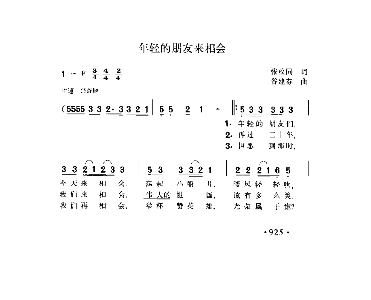 年轻的朋友来相会 张枚同词 谷建芬曲