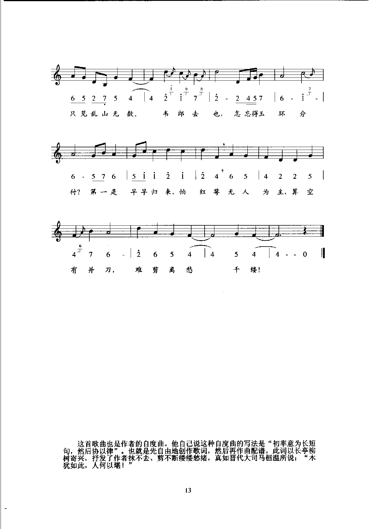 这首歌曲也是作者的自度曲。他自己说这种自度曲的写法是“初率意为长短句,然后协以律”也就是先自由地创作歌词。