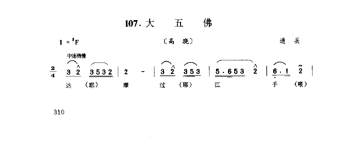 花会歌:大五佛 通县(北京民间歌曲简谱)