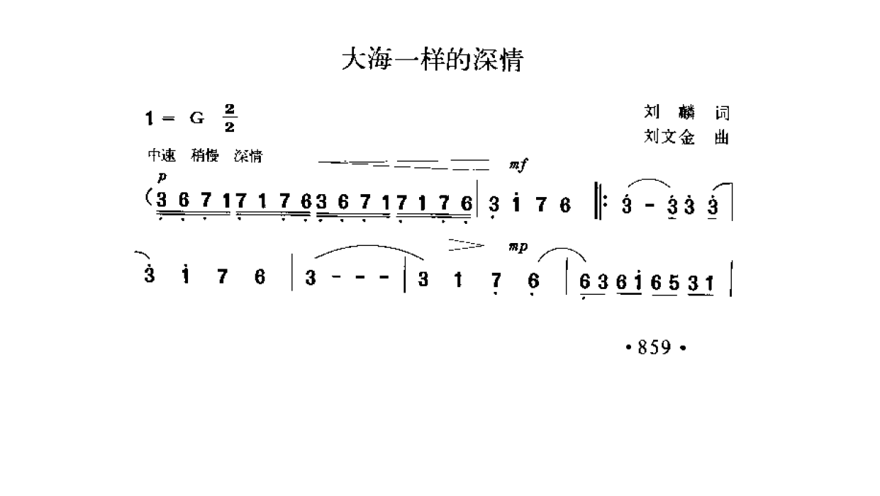 大海一样的深情 刘麟词 刘文金曲简谱歌词是曲谱查询网于2025年01月14日 10:15:02更新在乐谱大全频道中的内容,收录在乐谱大全栏目中;曲谱查询网分享的大海一样的深情 刘麟词 刘文金曲简谱五线谱高清图片,欢迎在线免费下载;曲谱查询网无需注册,即可直接下载海量歌曲谱与乐器学习相关资料。