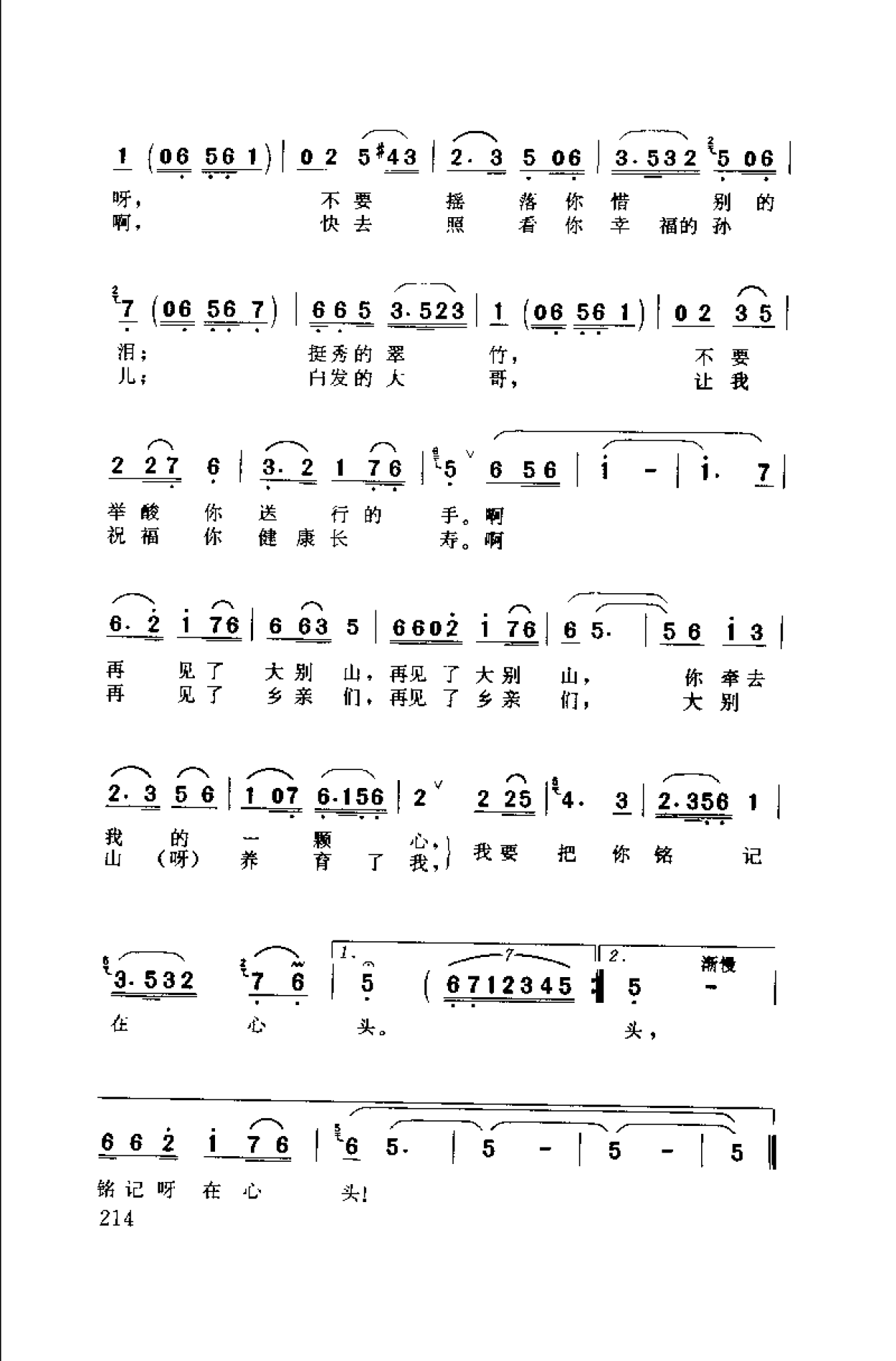简谱:再见了,大别山·1993王和泉词 雷远生曲(吕继宏演唱)