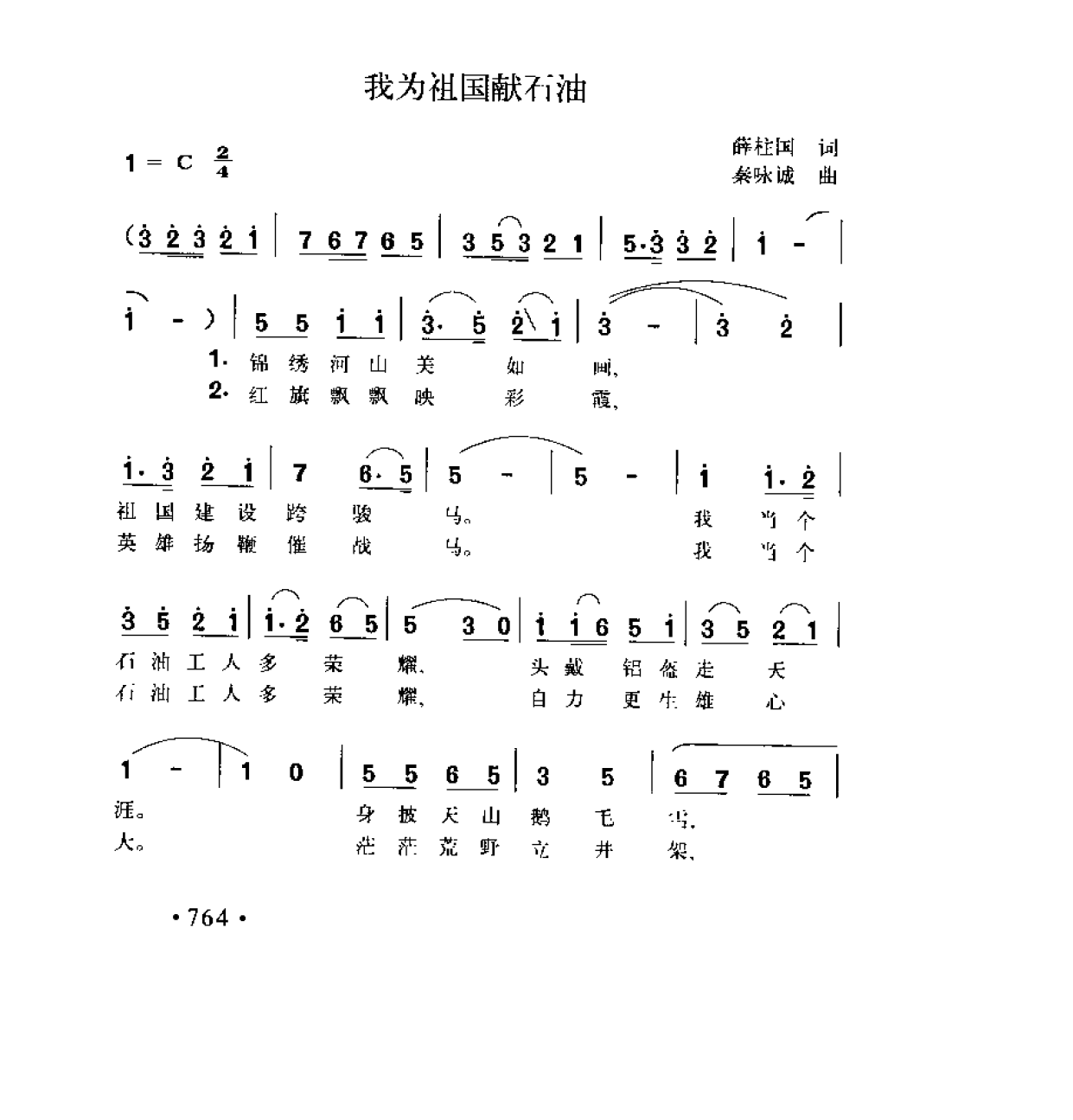 我为祖国献石油 薛柱国词 秦咏诚曲
