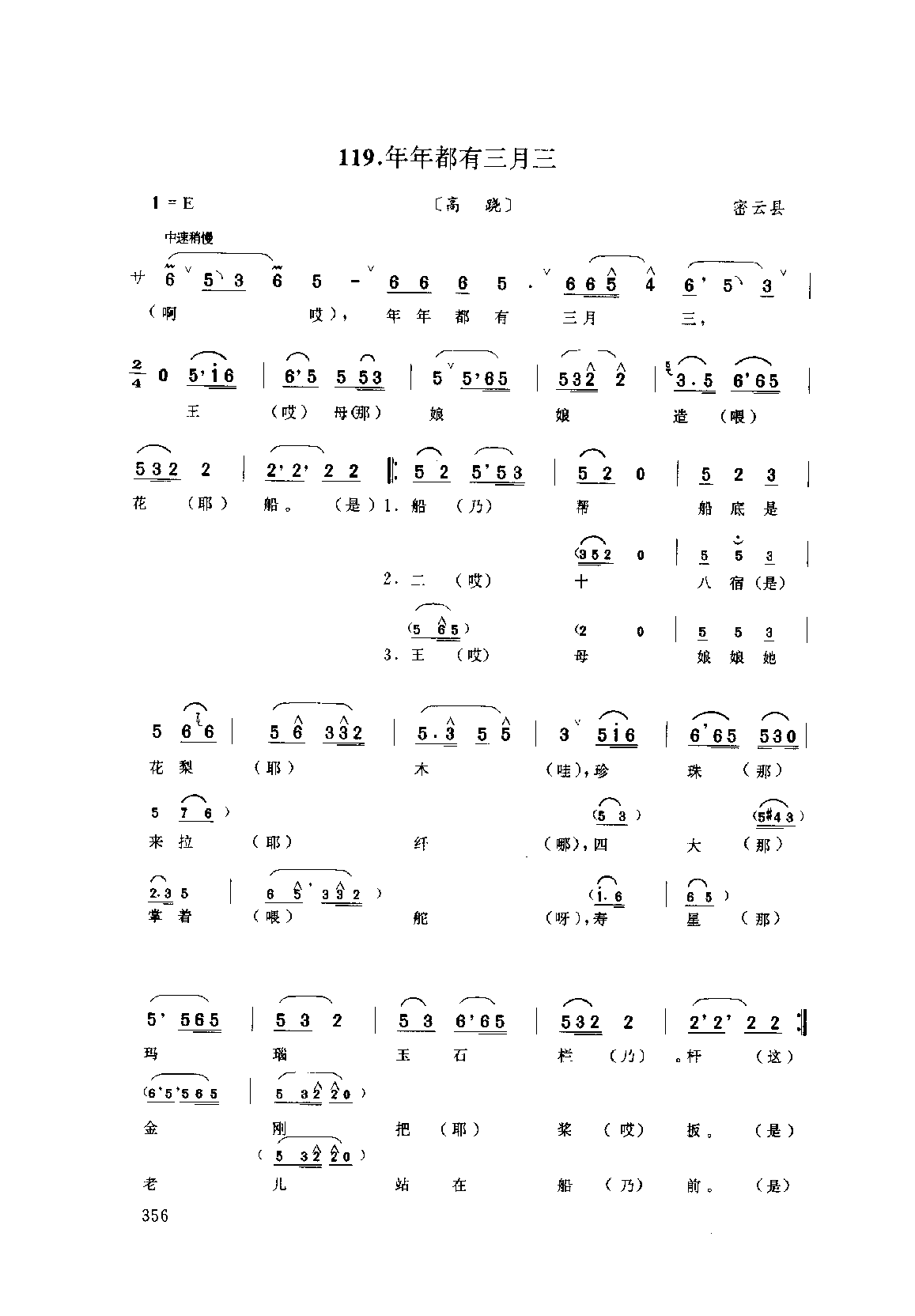 花会歌:年年都有三月三 密云县(北京民间歌曲简谱)